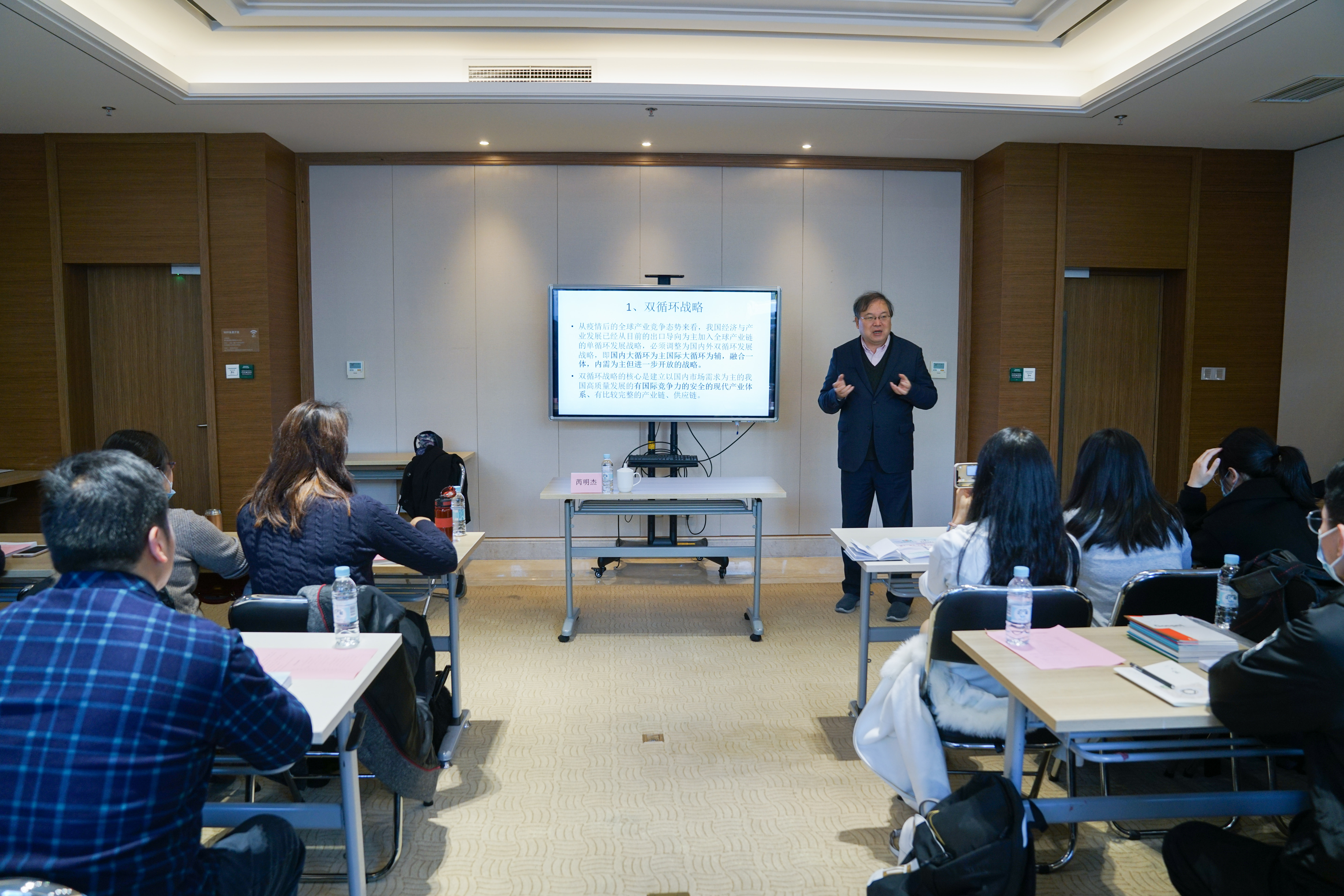 开幕式后,论坛特邀复旦大学教授芮明杰作了题为“双循环与产业发展新思路”的专题报告。他结合数字经济的发展,系统介绍了当前国内外产业发展的现状与挑战,分析了未来产业“双循环”的具体举措。