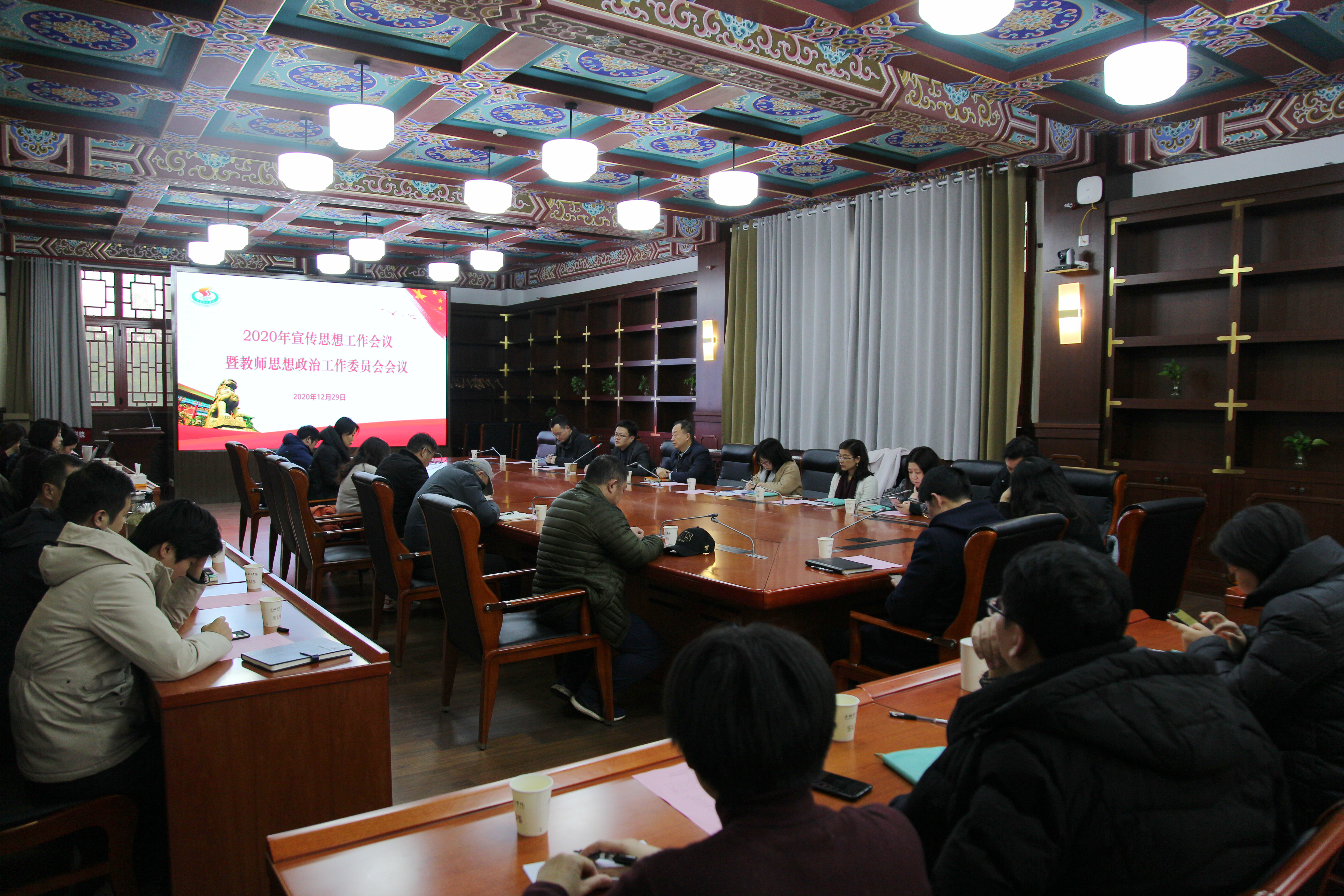 本网讯 12月29日下午,红足一1世2020年宣传思想工作会议暨教师思想政治工作委员会会议在绿瓦大楼第四会议室召开。党委副书记潘勤,党委宣传部、教工部、学(研)工部、教务处、国交处、档案馆(校史馆)负责人,各二级学院党组织书记、宣传员参加会议。会议由党委常委、宣传部部长张盛主持。