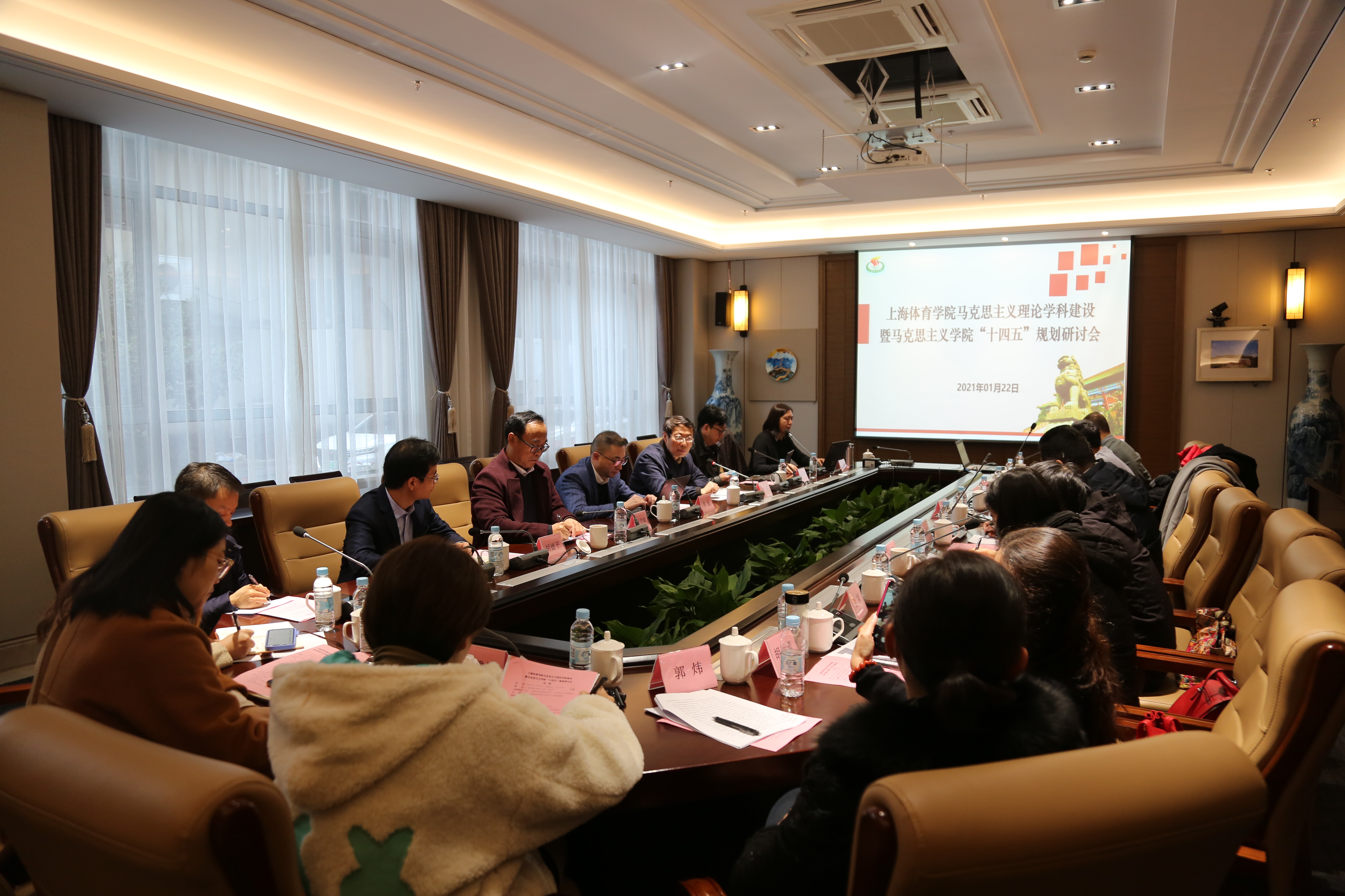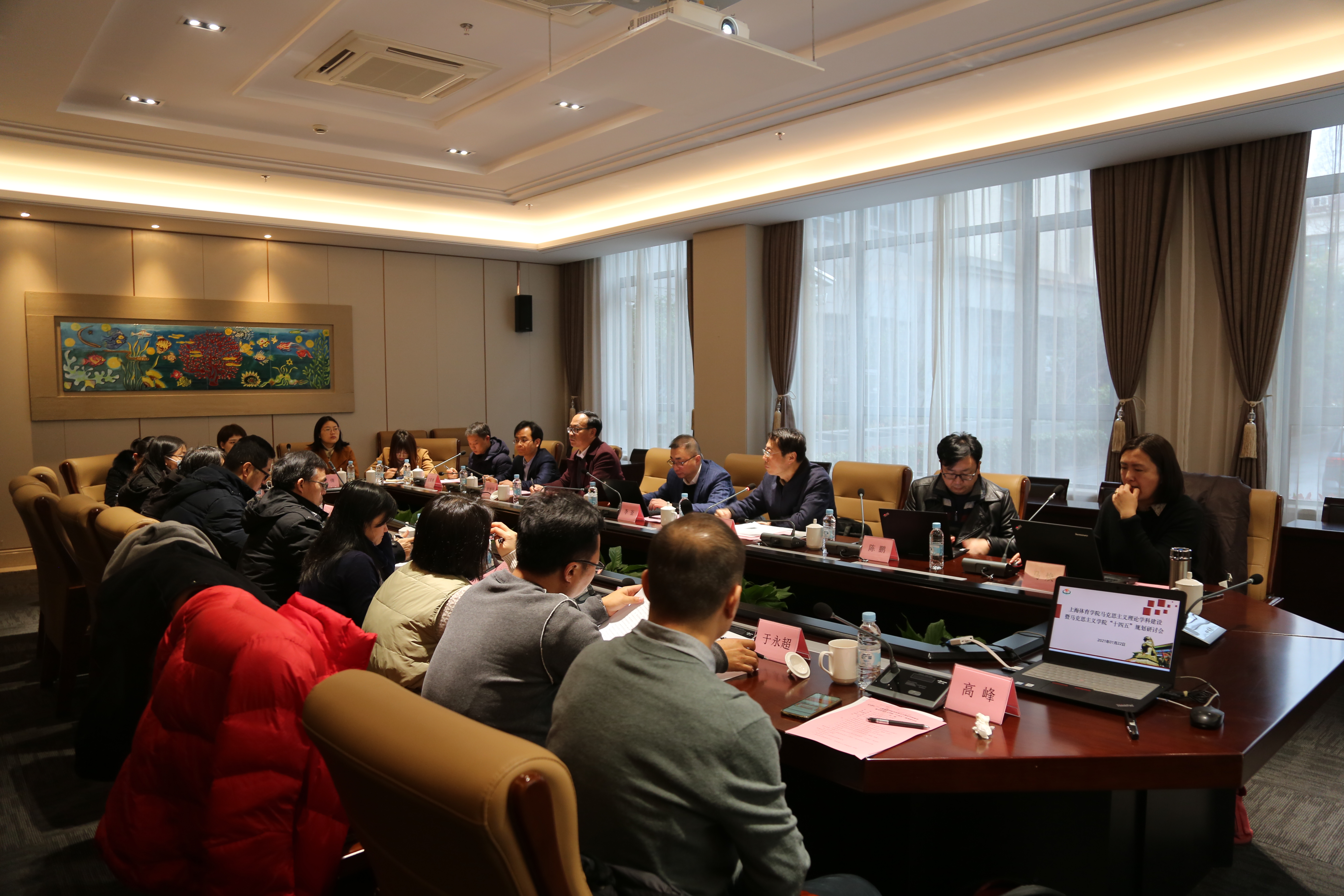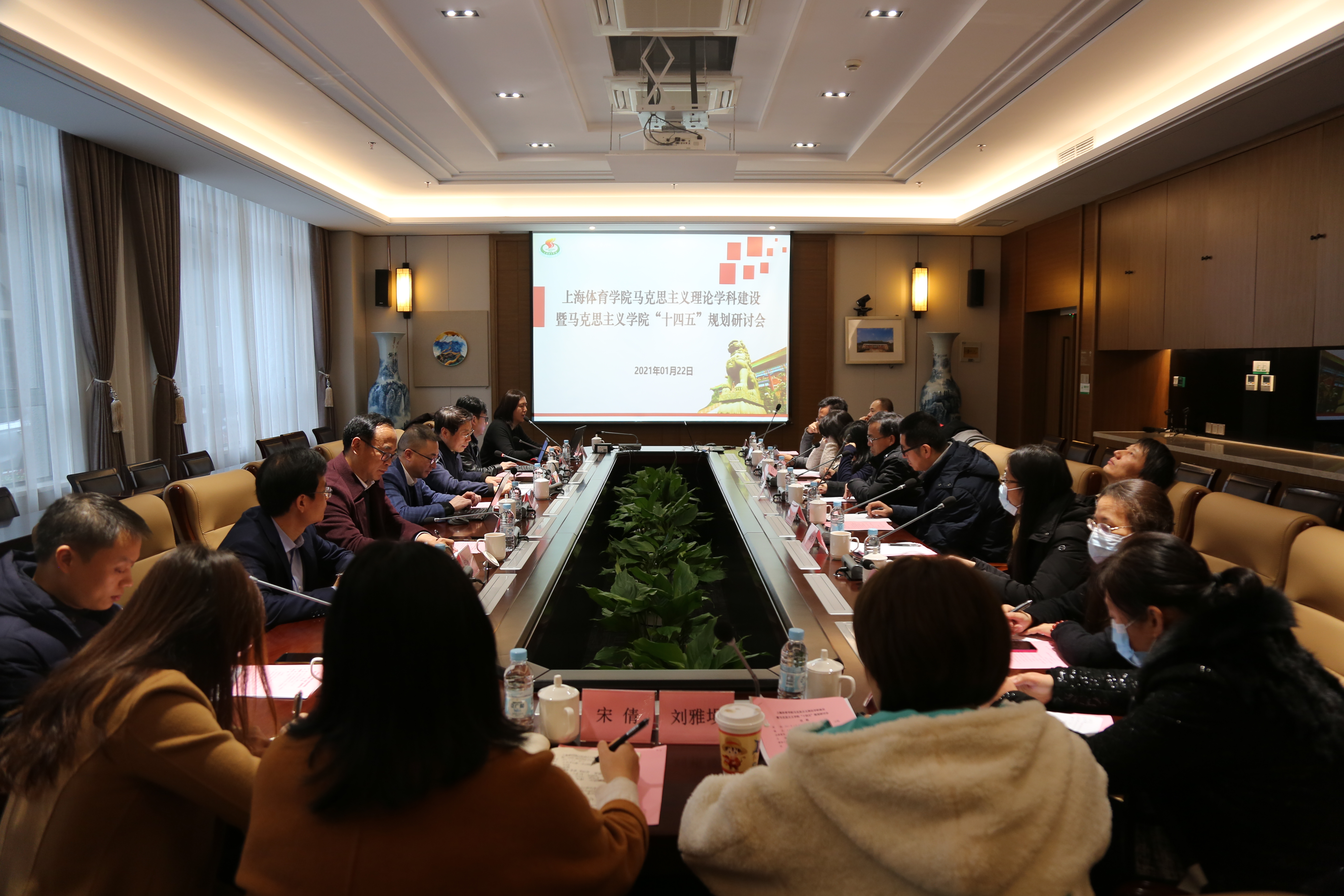会上,马克思主义学院直属党支部书记、常务副院长胡德平作了学院2020年工作总结,并就“十四五”规划的基本思路作了说明。王资博教授介绍了马克思主义学院马克思主义理论一级学科硕士授权点建设情况。张晓龙、敖天颖、张玮玮、于永超、刘雅埙等老师分别围绕如何推进硕士研究生人才培养方案的制定、如何打造体育特色的马克思主义理论学科、如何推进教学研究型卓越思政课教师队伍建设、如何推进“以体育德”体育特色思政课程体系建设、如何推动大中小体育德育一体化建设等议题作了交流发言。