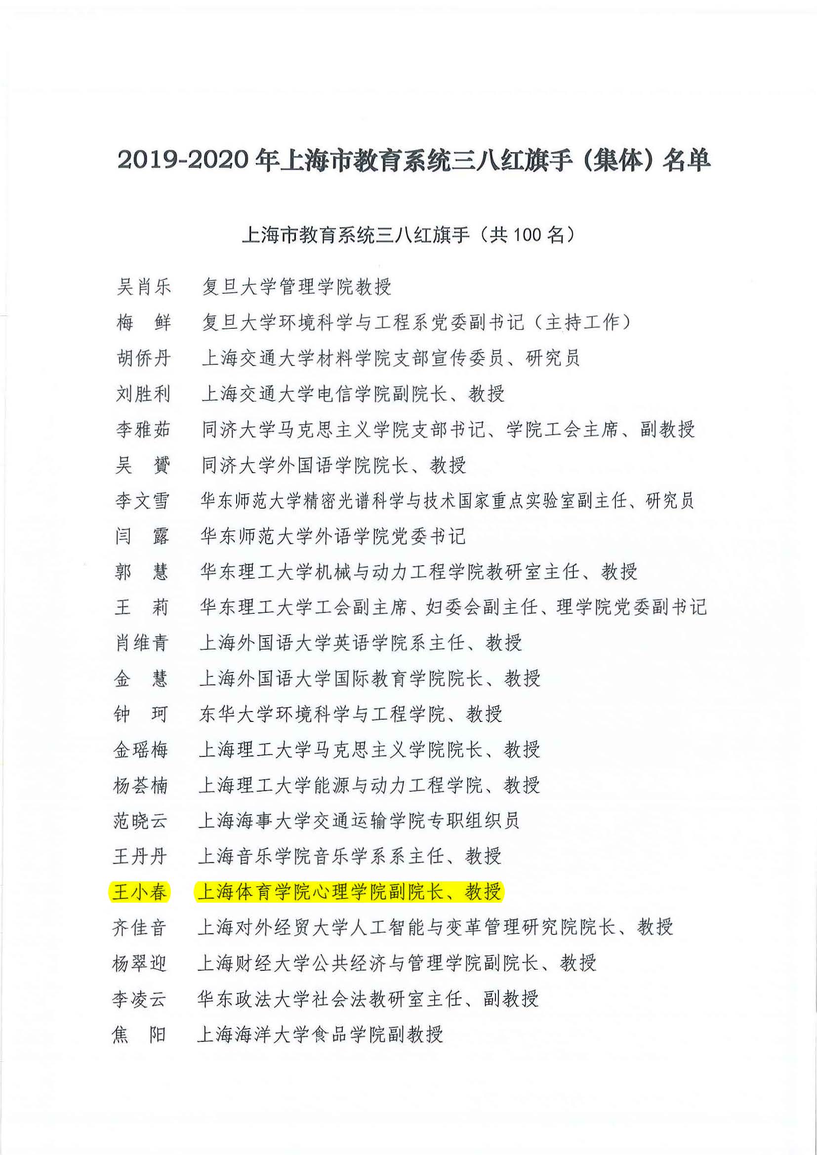 经审议,决定授予柳瑞芝等27位同志“上海体育学院三八红旗手”称号,授予中国乒乓球学院教学训练团队等24个集体“上海体育学院三八红旗集体”称号。