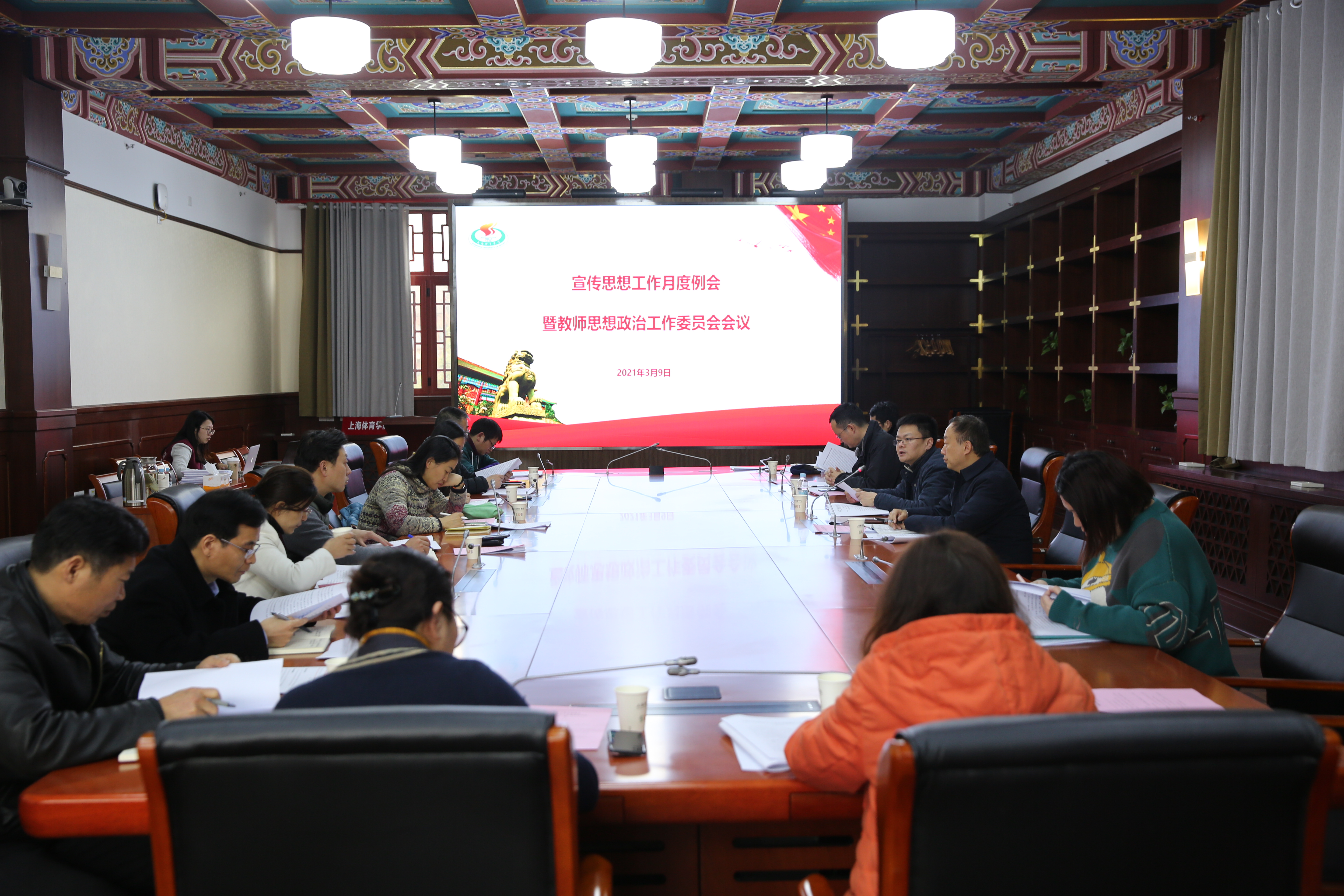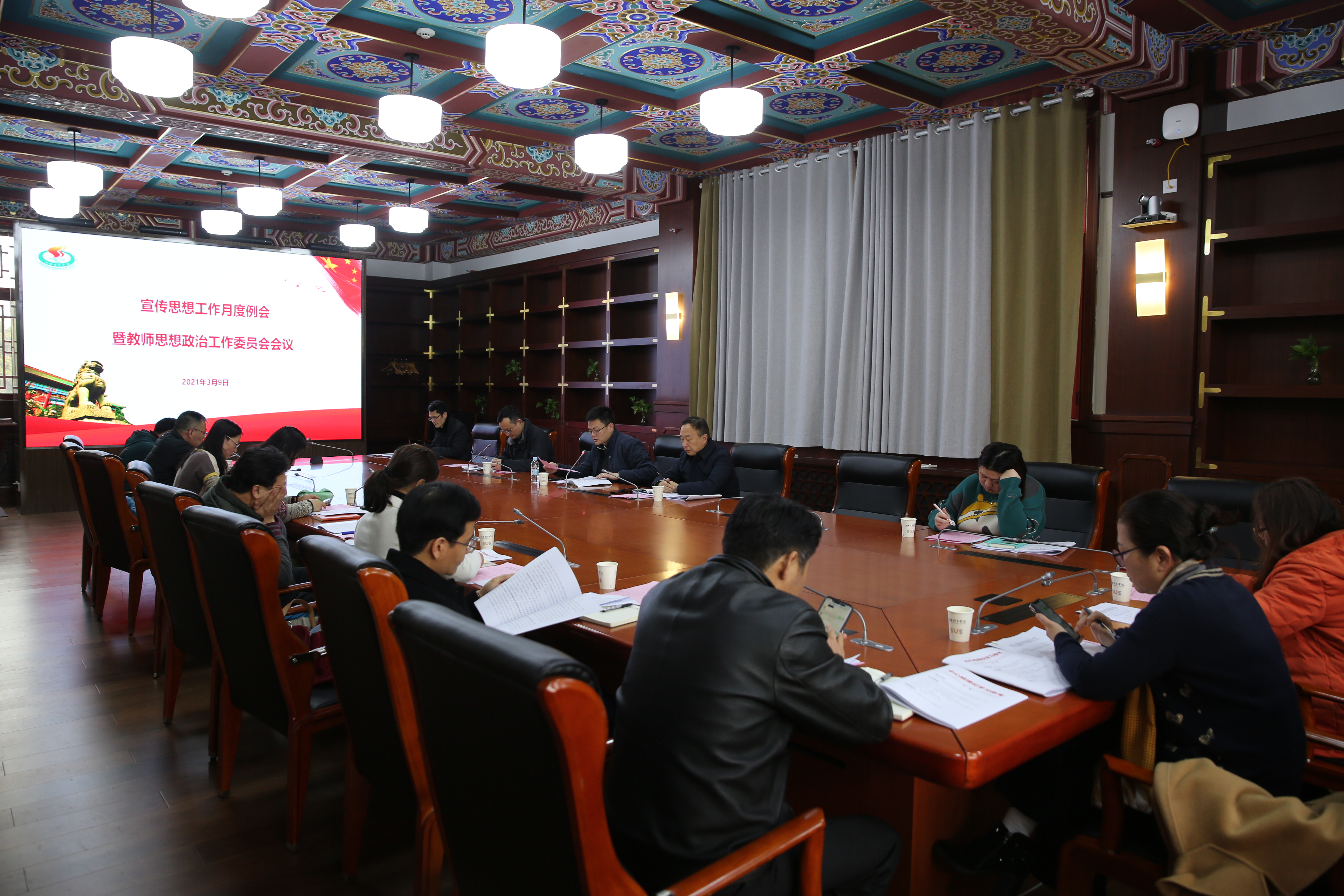 本网讯 3月9日下午,红足一1世宣传思想工作月度例会在绿瓦大楼第四会议室召开。党委副书记潘勤,党委宣传部、教工部、学(研)工部、教务处、国交处、后勤处等部门负责人,二级学院党组织书记参加会议。党委常委、宣传部部长张盛主持会议。党委副书记潘勤就深入学习贯彻习近平总书记在党史学习教育动员大会上的重要讲话精神提出要求。
