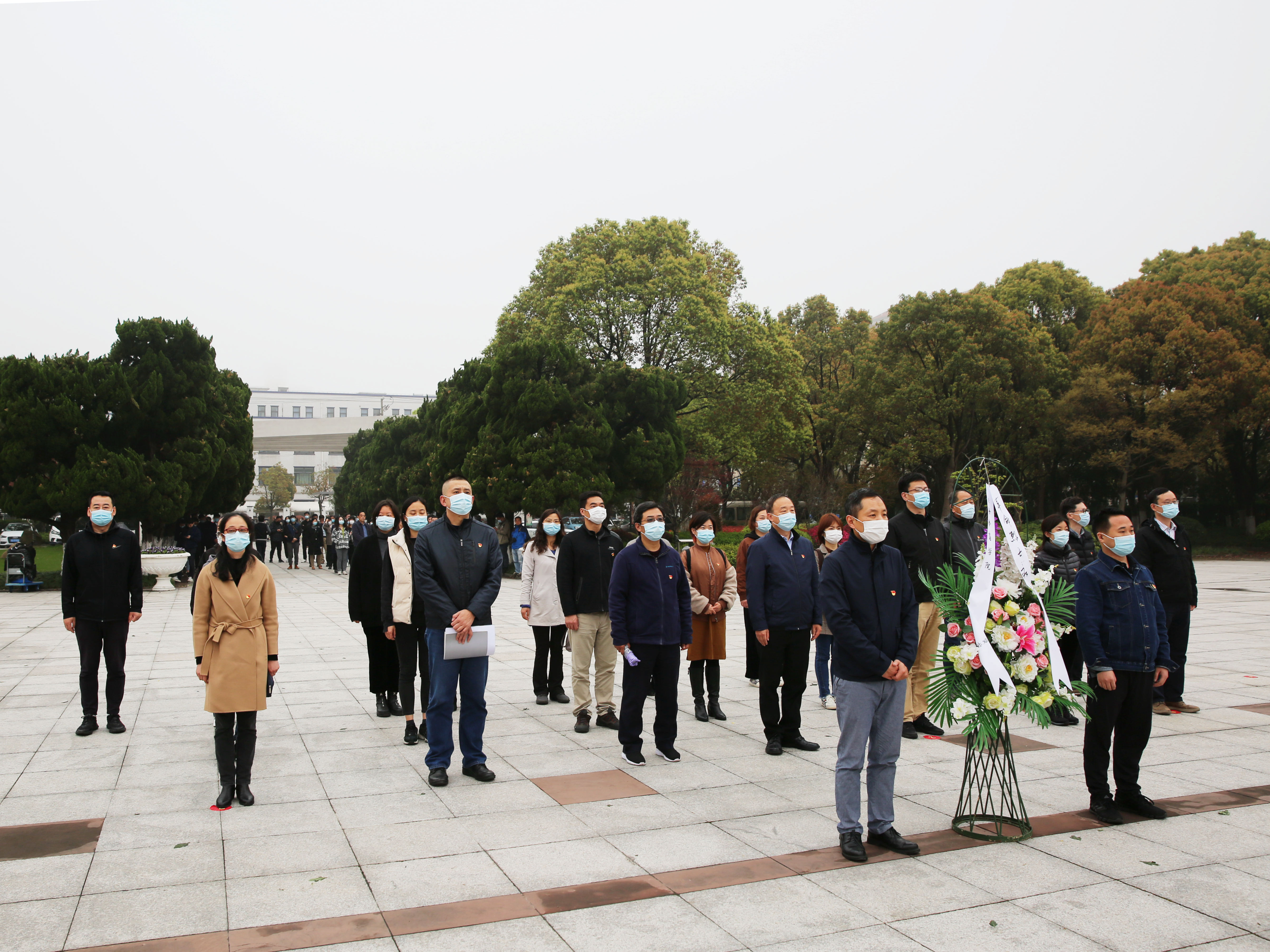 本网讯 清明忆英烈,忠魂贯长空。为贯彻学校党委党史学习教育的部署要求,4月1日下午,机关党委党员代表近30人,在校党委副书记潘勤的带领下,来到宝山烈士陵园祭扫先烈。