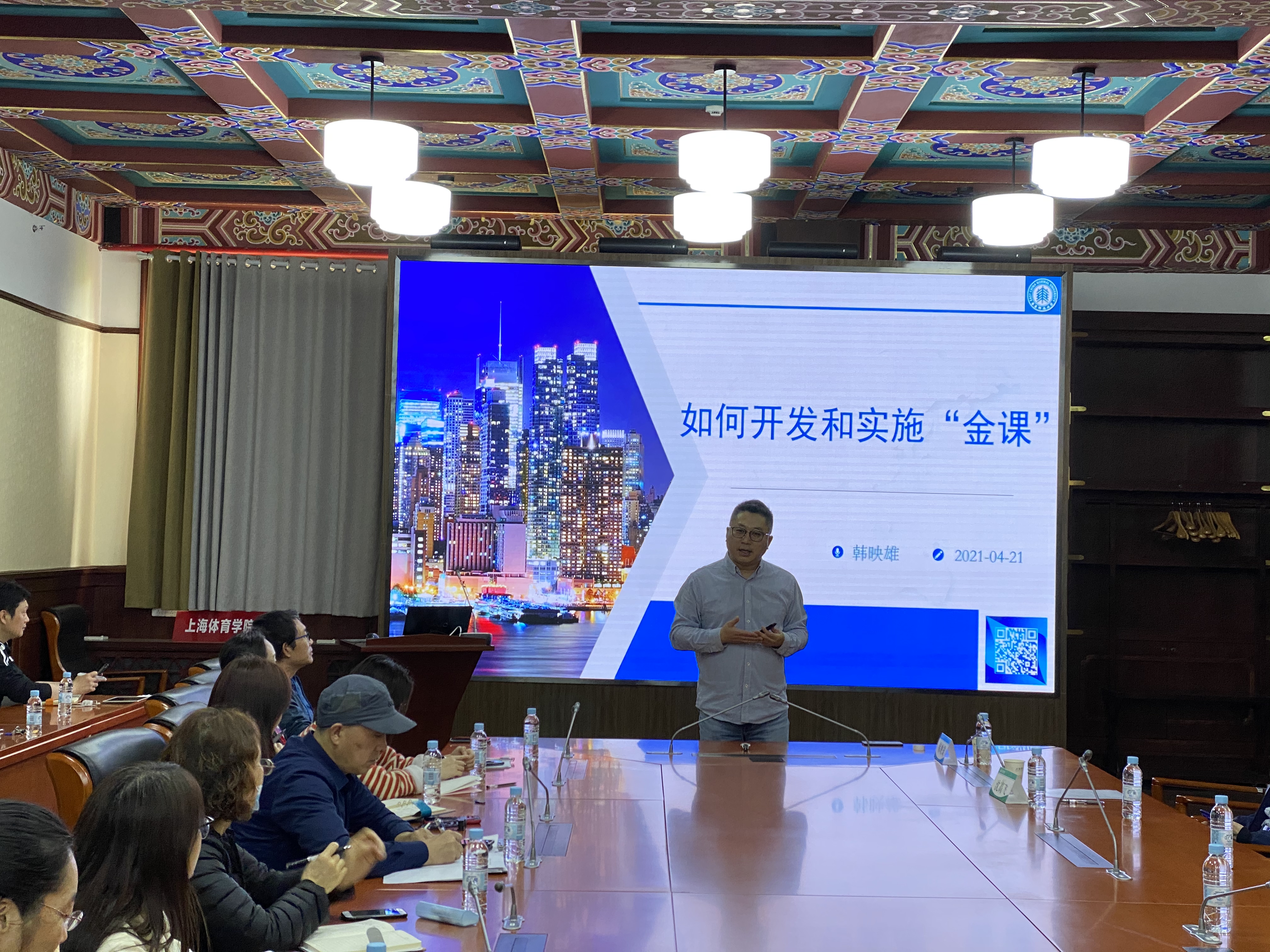 本网讯 4月21日下午,华东师范大学考试与评价研究院副院长韩映雄教授做客第十五期绿瓦教学讲堂,并作题为“如何开发和实施‘金课’”专题讲座,各二级学院教学副院长、教师、教学管理人员等50余人参加培训活动。讲座由教务处副处长沈高飞主持。