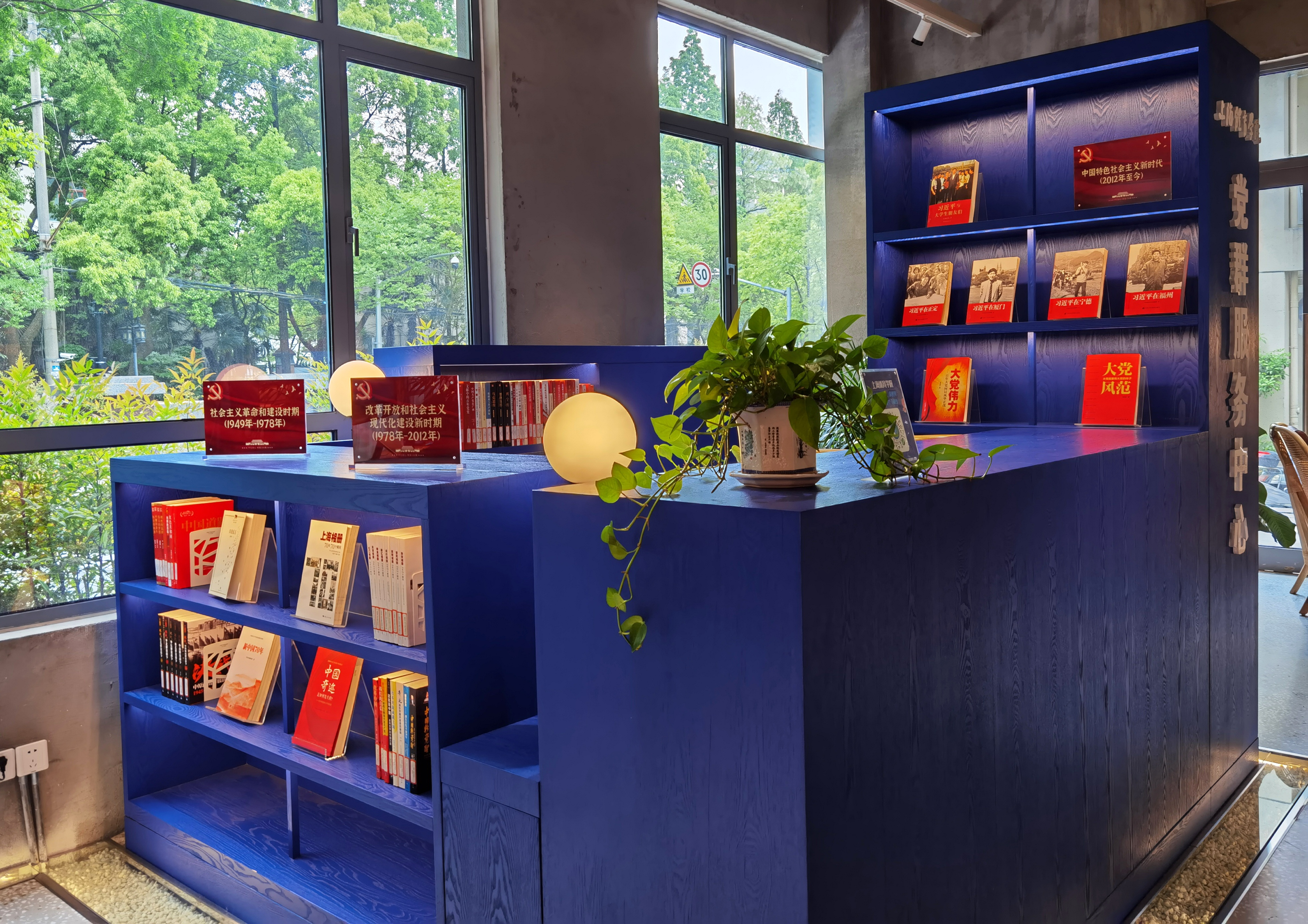 传统纸质书展的展区共分为两部分,一部分位于新图书馆一楼大厅,另一部分位于绿瓦体育书店内。纸质书展为读者们提供了大量的优质党建书籍,满足了读者现场参观实体书展的体验。