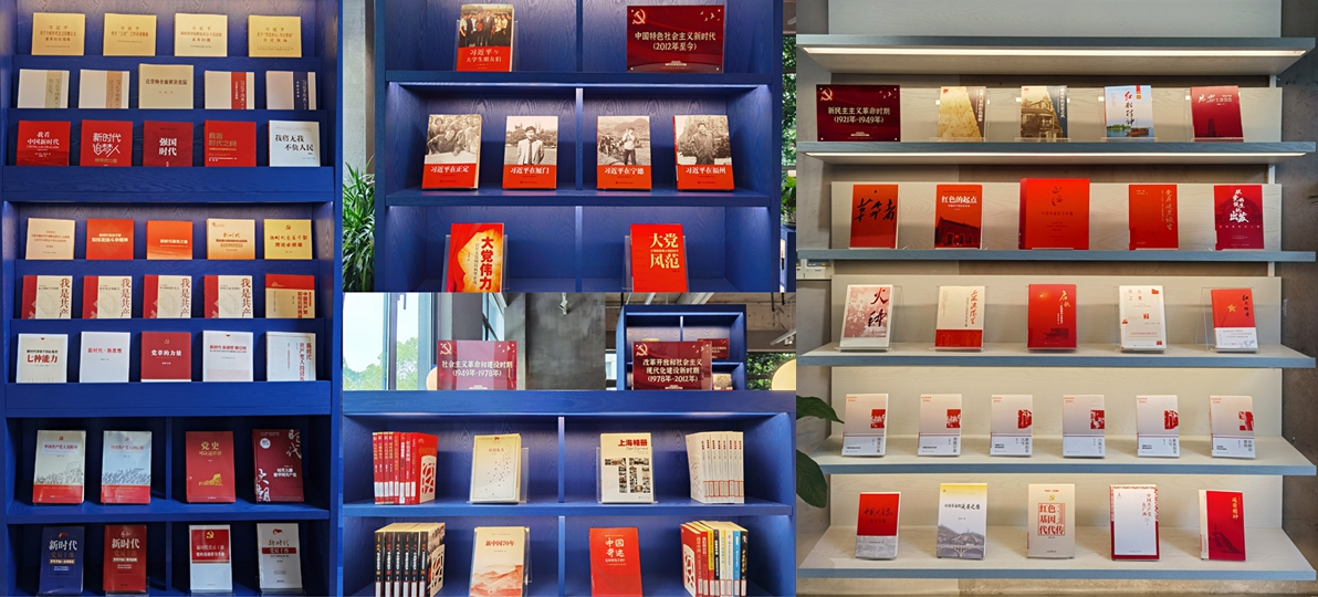 根据中国共产党发展历程,本次书展具体按照党的四个发展时期进行展出,分别为:新民主主义革命时期、社会主义革命和建设时期、改革开放和社会主义现代化建设新时期、中国特色社会主义新时代。我们将每个时期的书籍进行分类,并摆放在相应的区域,便于读者获取和阅读,有利于读者更加整体和全面地了解中国共产党的发展历程。