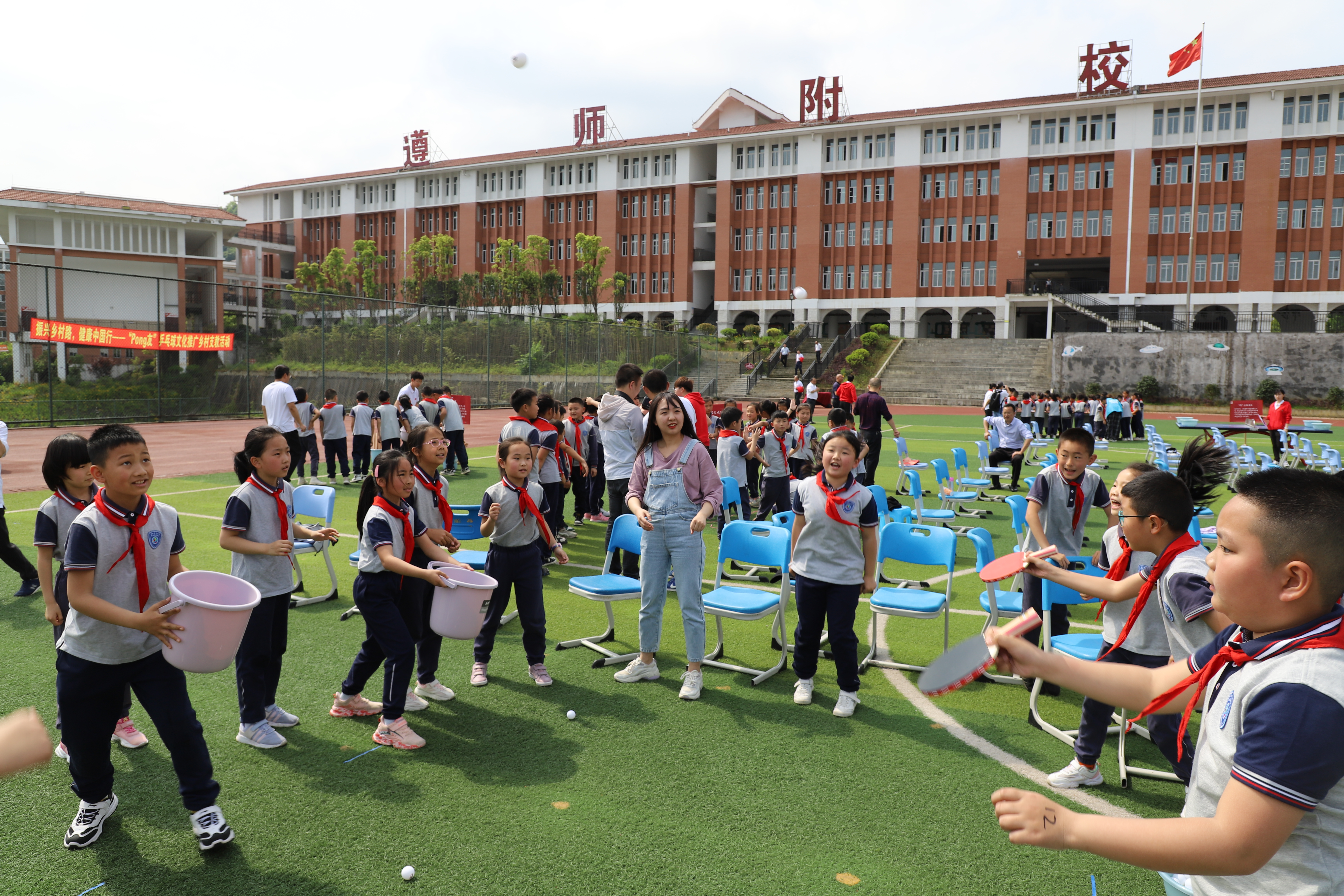 5月11日-12日,“Pong友”乡村公益支教活动分别在遵义师范学院附属实验学校、遵义市正安县建政中学举行。中乒院师生团队结合当地实际,创新乒乓球运动普及推广活动形式内容。面向基层中小学生,团队开展乒乓趣味接力、乒乓涂鸦、百发百中、绳子运球、纸筒接力、乒乓保龄球等各类趣味游戏,并组织策划丰富多彩的表演赛。团队以乒乓球百年历史为切入点,紧密结合“国球”文化精神内涵,推出“国乒荣耀·祖国荣誉高于一切”等课程。