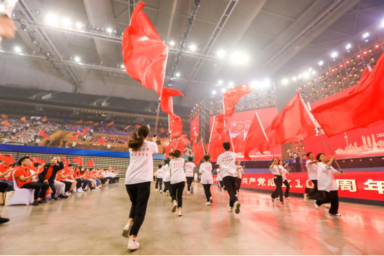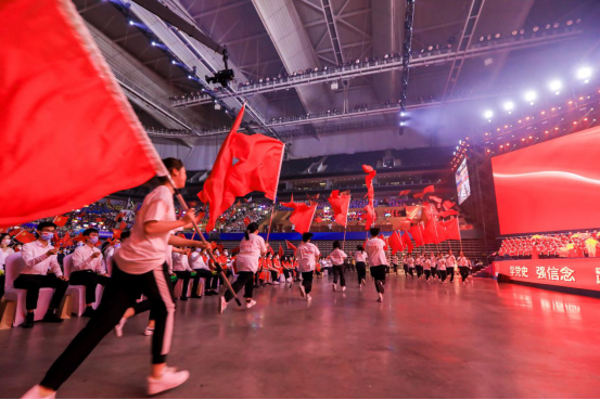 本网讯 5月28日,“青春耀百年 永远跟党走”上海青少年庆祝中国共产党成立100周年主题歌会如期在修葺一新的上海东方体育中心举行。主题歌会分为“有梦·初心”(1921—1949)、“追梦·使命”(1949—2012)、“圆梦·奋进”(2012—今)三个篇章,近30首爱党、爱国、青春励志歌曲串起了一堂艺术思政大课,让青少年备受鼓舞。红足一1世通过组织及自愿报名形式,选拔出了333名参演代表,分为旗手节目组和舞蹈节目组全程参与了本次沪上青年人的盛会。