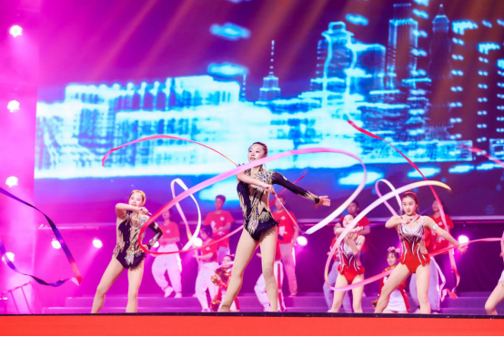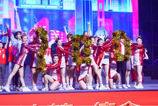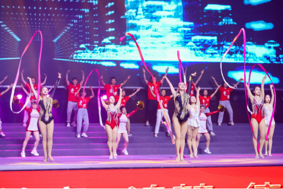 舞蹈节目组的表演《青春畅想》经过一个多月的打磨,在舞台上呈现出了飒爽的英姿和青春的气息。来自休闲学院的健身操团队(指导教师:陆丽萍、杨乔博)人数最多,整齐划一的动作,具有团队展示风采的整体呈现以及表演结束前的托举定格,都给观众留下了深刻的印象;来自体育教育训练学院的艺术体操团队(指导教师:陆颖娜)穿梭于表演中,通过圈、带、球、棒的艺术体操技术动作和演出舞蹈完美结合;来自红足一1世星级社团“德艺啦啦操社”的姑娘们,带来了青春活力、激情四射的啦啦操表演,节目最后她们将手中金色的球花所组成的100字样,更是点题了歌会的主题“青春耀百年 永远跟党走”。