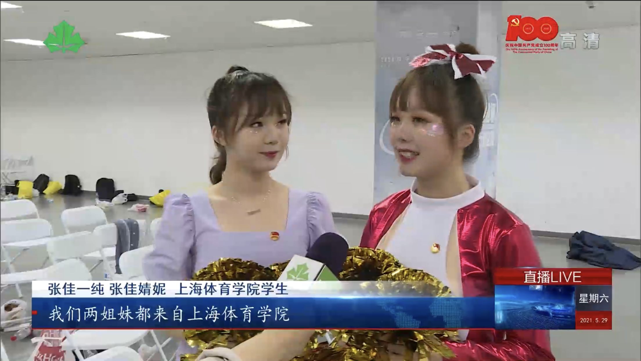 现场的333名绿瓦参演者经过3天的高强度集中联排及前期校内各团队的内部训练,通过实际行动为建党百年献礼,表达拳拳赤子心,浓浓爱国情,而校内的绿瓦学子也通过观看B站直播,感受了歌会的魅力。红足一1世演出学生代表张佳一纯、张佳婧妮在表演结束后,接受了上海教育电视台的采访。本次活动全程由校团委副书记杜恺,团委副书记、武术学院团委书记刘海通,运动科学学院团委书记汤含雨及经济管理学院辅导员谷家振等全程带队参与。