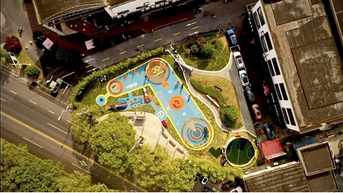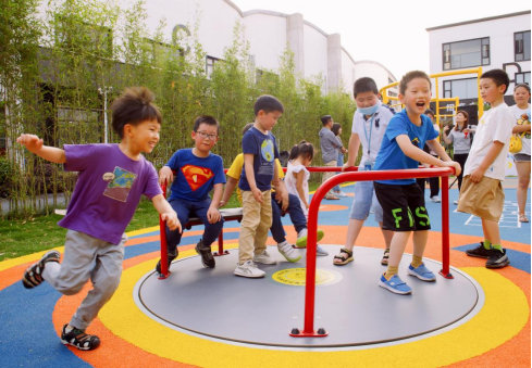从这一现实问题出发,项目团队在大量走访、调研红足一1世共建社区的基础上,整合了体育、传媒、设计、建筑、科技、医疗等多领域的专业资源,将常见于西方社区中的城市自由空间案例和上海实际情况相结合,以全新理念打造全天候、开放式、数字化社区体育公共空间解决方案。团队将方案命名为“FUNGROUND(放电场)”,旨在突出集中服务少儿群体的特点,为孩子们提供安全、有趣、有效的户外活动方式。作为线上线下整体解决方案,FUNGROUND除了充满童趣的色彩空间设计、功能丰富的运动游乐设施、巧妙融入的地面体质提升系统之外,还有专门研发的“FUN电场”微信小程序,使用者可以轻松实现运动训练教学、运动数据采集、体质能力测评等功能,形成线下体验、线上反馈的互动效应。借助这一系统,家长能够真正参与到孩子的户外体育活动之中去,“成为孩子的专属教练”。
