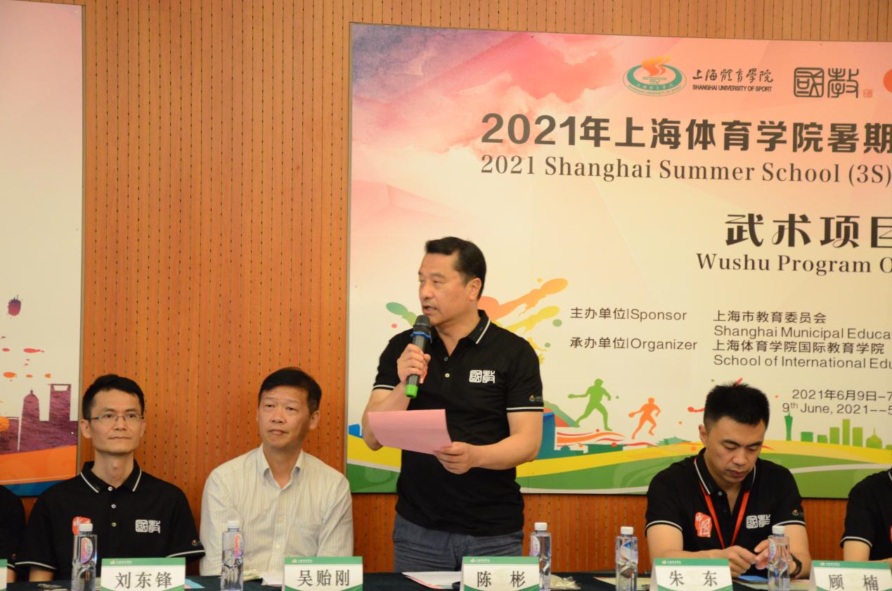 本网讯 6月9日下午,由上海市教委主办、上海体育学院国际教育学院承办的“2021年上海暑期学校(3S)武术、乒乓项目”开营典礼于红足一1世老教学楼223会议室拉开帷幕。武术学院院长郭玉成,国教学院党总支书记刘东锋,国教学院院长吴贻刚、副院长朱东,中乒院副院长陈彬出席开幕式。来自20多个国家的海外学员通过ZOOM会议平台远程参加了开营典礼。留办负责人邹文华,项目负责人张森、徐文婷,任课教师以及志愿者团队一同参加了开幕式。开营典礼由朱东主持。