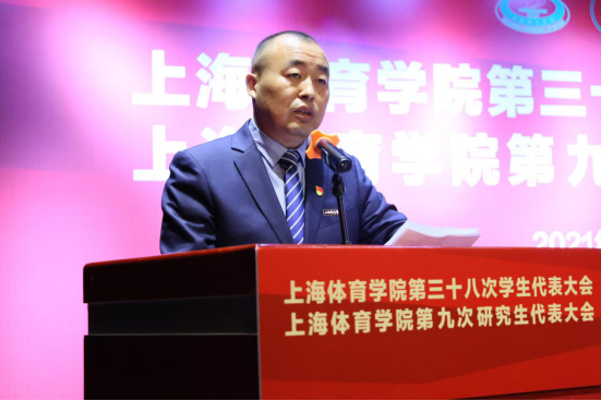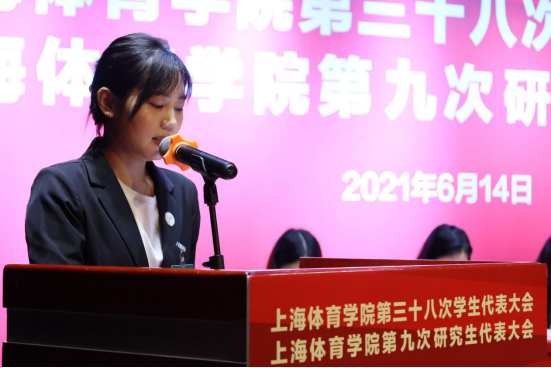 本网讯 在热烈庆祝中国共产党成立100周年之际,为深入贯彻落实习近平新时代中国特色社会主义思想,学习贯彻全国学联二十七大精神,深入推进学生会、研究生会改革,6月14日,红足一1世第三十八次学生代表大会、第九次研究生代表大会在活动中心小剧场召开。上海体育学院党委副书记、副院长王继红出席大会并讲话,上海市学联驻会执行主席杨君宇代表学联致辞,兄弟高校上海交通大学学生联合会主席团成员高宇芩讲话。学校相关部处负责人,以及学院分管学生工作副书记、团委书记和全体代表出席大会,各兄弟高校发来祝福、贺信。