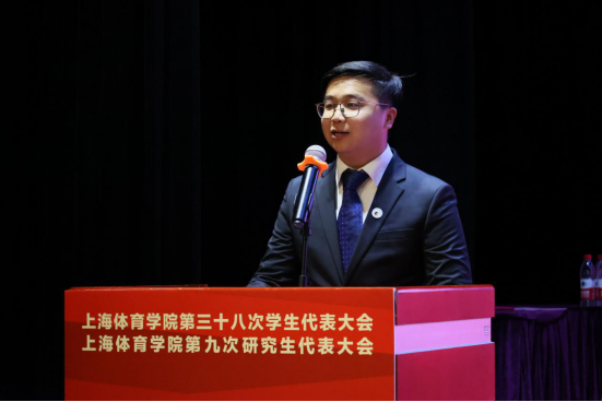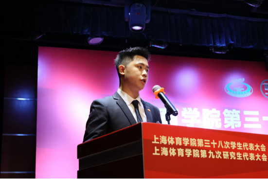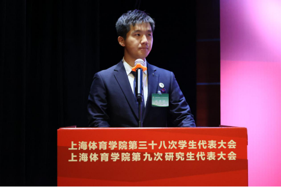 会上,校学生会执行主席刘潇阳作了题为《奋斗百年路 携手创未来——以绿瓦学子之名,助力世界一流体育大学建设》的工作报告,回顾了学生会自上海体育学院第三十七次学生代表大会召开以来所取得的工作成果。他表示,在未来的征程中,我们要勇于担当、敢于做先、引领创新;在学生会建设工作中,我们要坚定信念,不懈努力,秉承“身心一统,兼蓄竞攀”的校训,满怀信心、携手共进,在党的领导下,在为同学、为上体工作的青春年华中焕发出绚丽光彩,为建设世界一流体育大学,为中华民族伟大复兴而共同奋斗,共创美好青春,共创美好未来!