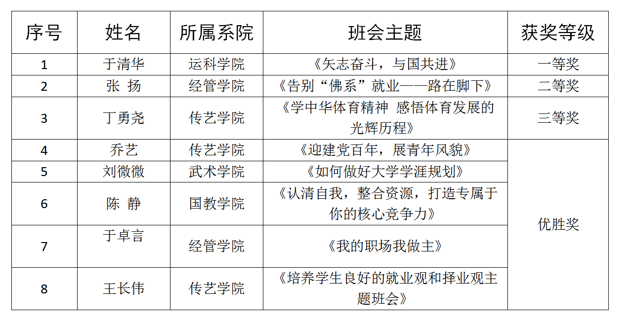 2021年上海体育学院辅导员主题班会决赛获奖名单