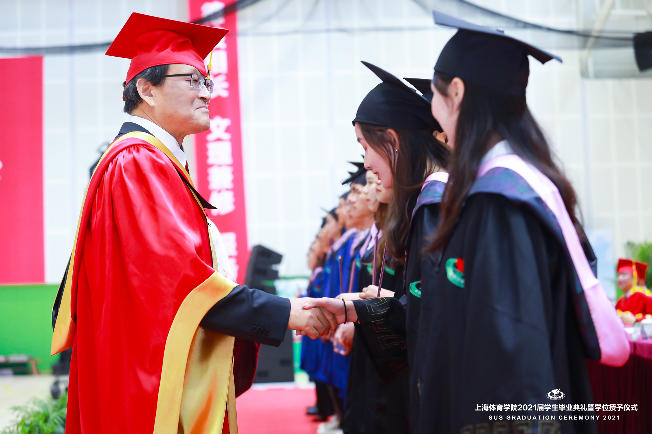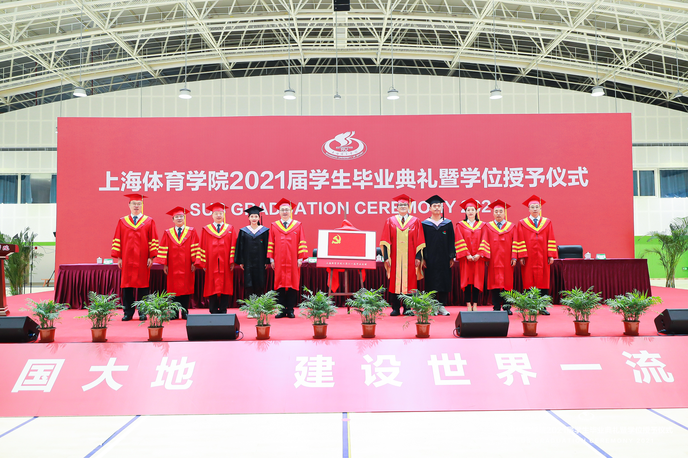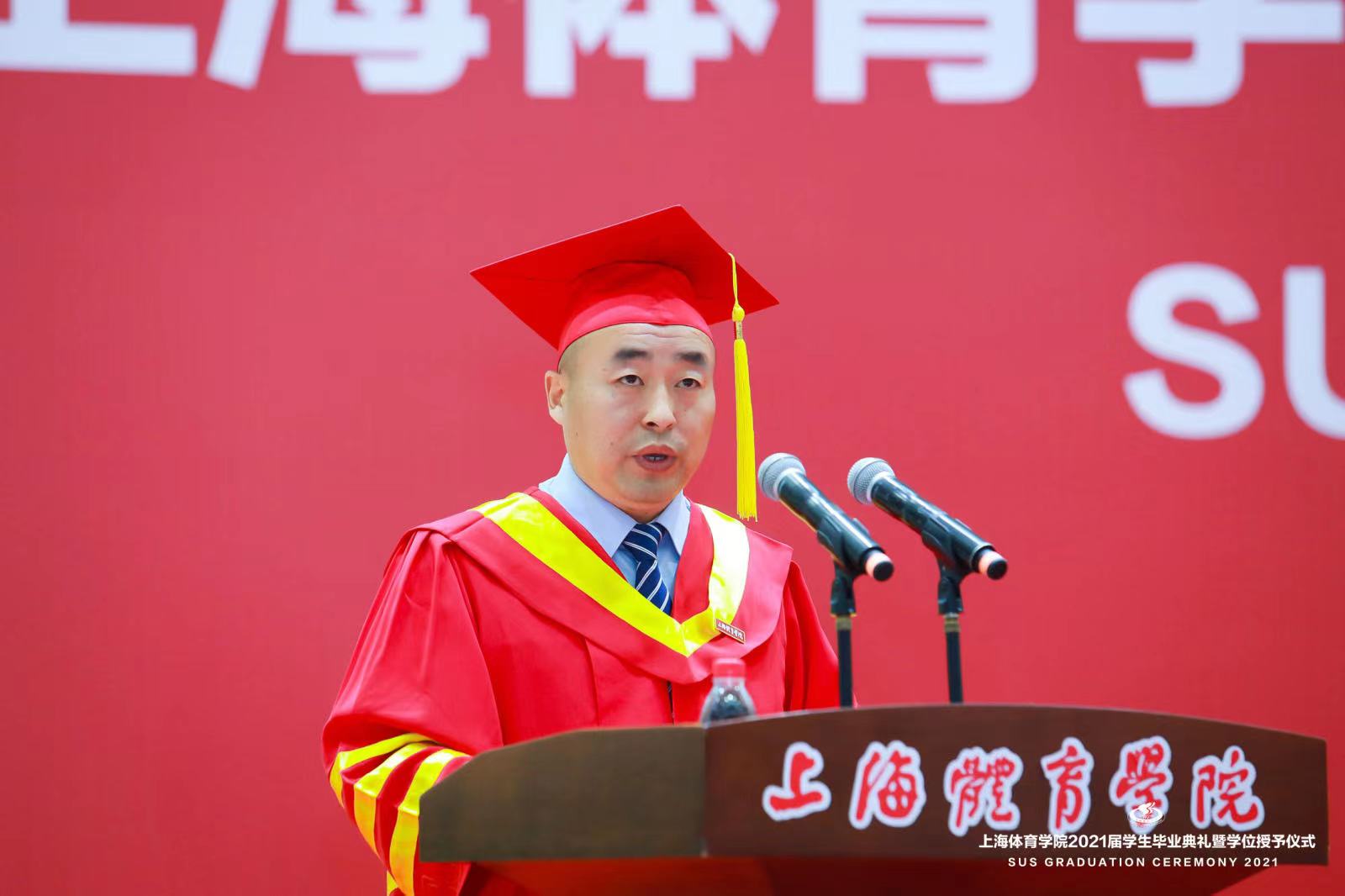 本网讯 6月21日上午,上海体育学院2021届学生毕业典礼暨学位授予仪式在综合馆隆重举行,党委书记李崟,党委副书记、院长陈佩杰,党委副书记潘勤,党委副书记、中国乒乓球学院党委书记杨玲,党委副书记、纪委书记崔勇,党委副书记、副院长王继红,副院长王陈、唐炎等校领导出席本次典礼。学校中乒院、各二级学院党政领导,相关职能部门、直属单位负责人,教师代表、毕业班辅导员、学生会主席等参加典礼,共同见证毕业的荣耀时刻,分享开启新征程的喜悦。典礼由学院办公室主任徐畅主持。