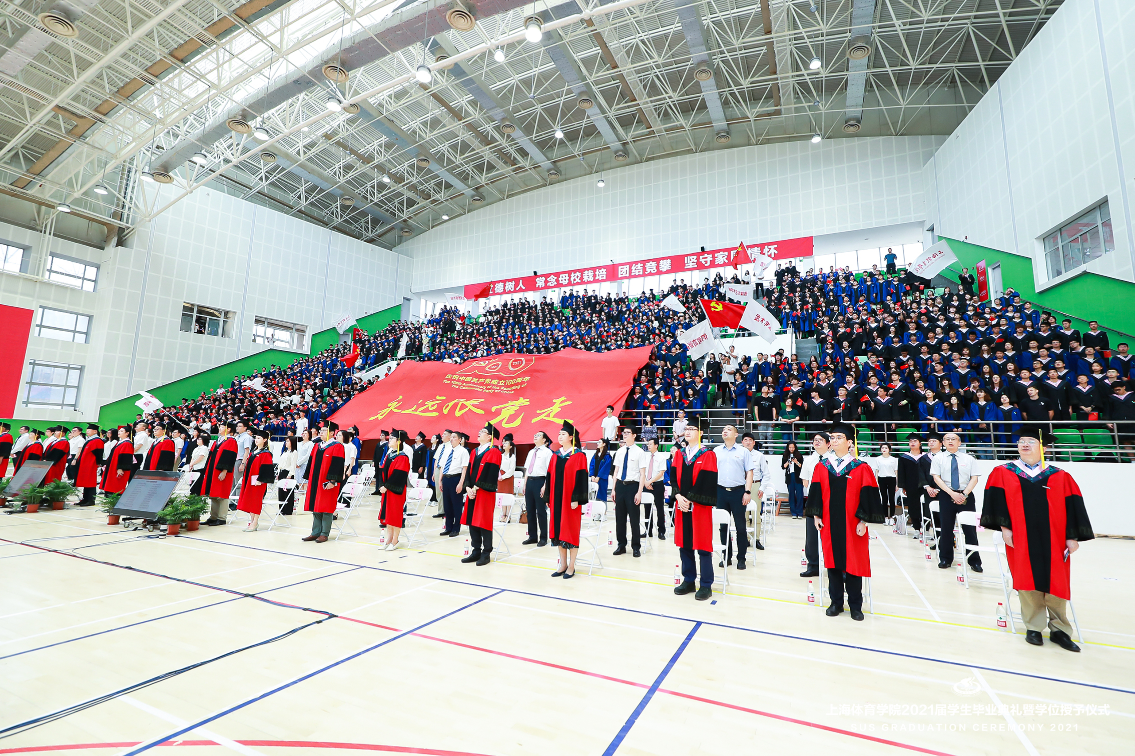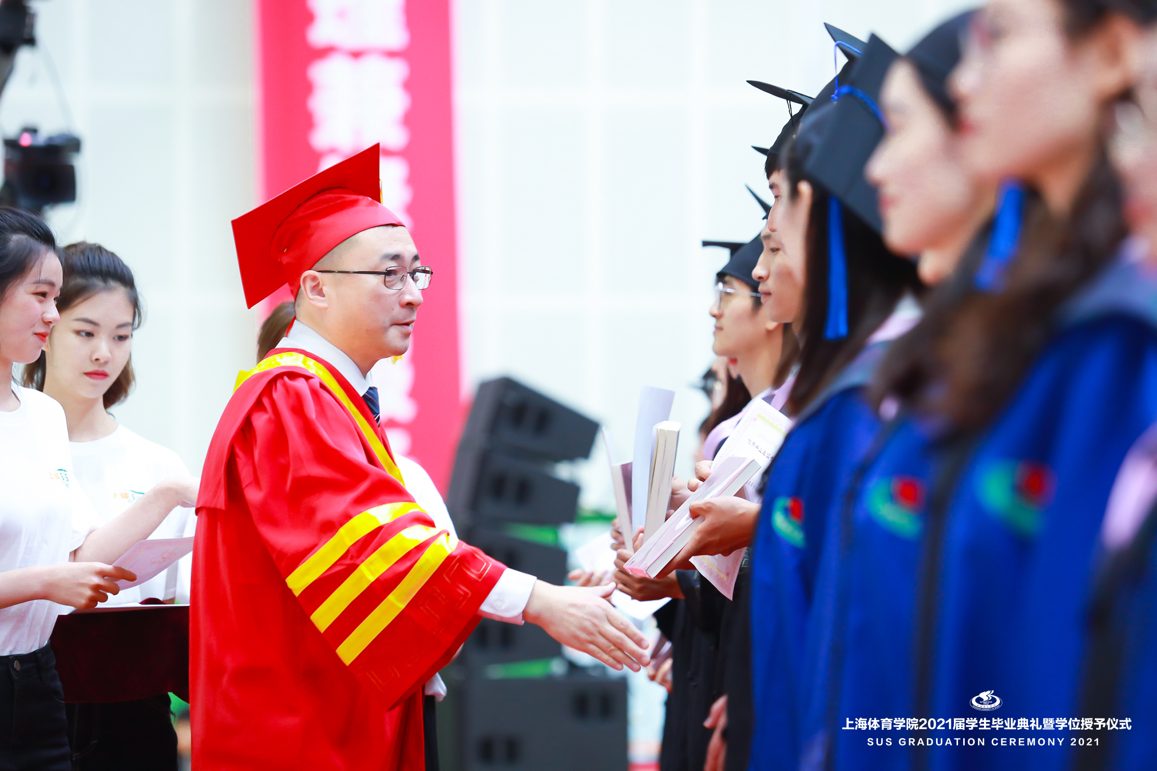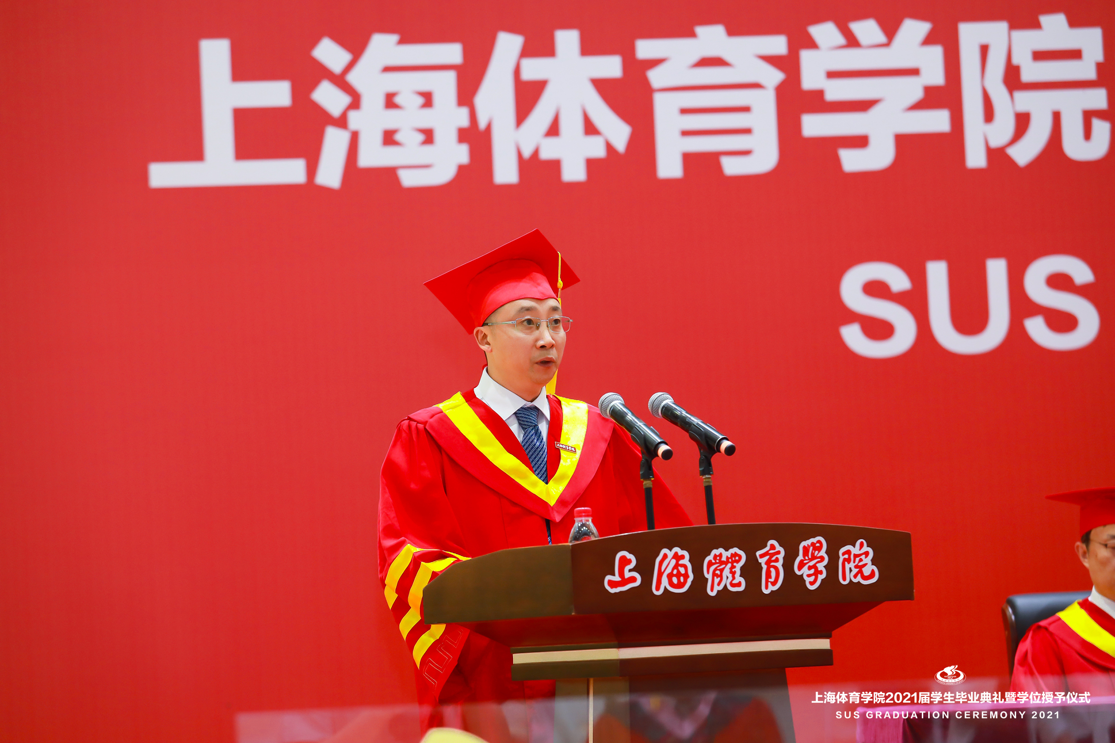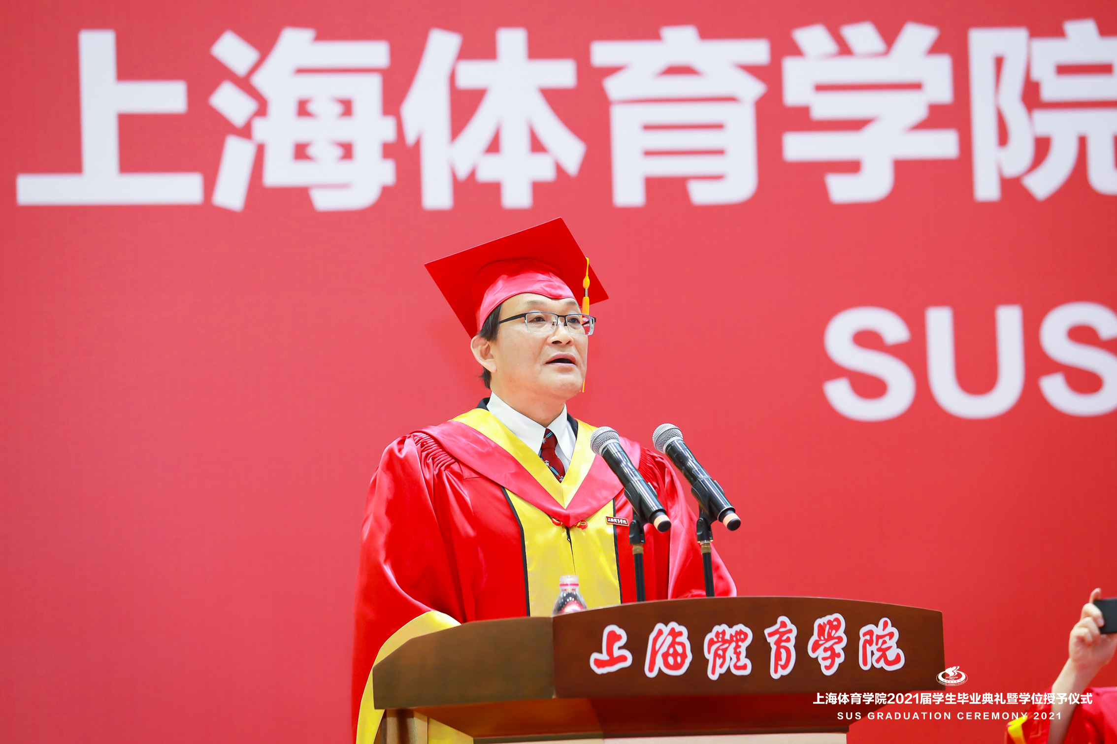本网讯 6月21日上午,上海体育学院2021届学生毕业典礼暨学位授予仪式在综合馆隆重举行,党委书记李崟,党委副书记、院长陈佩杰,党委副书记潘勤,党委副书记、中国乒乓球学院党委书记杨玲,党委副书记、纪委书记崔勇,党委副书记、副院长王继红,副院长王陈、唐炎等校领导出席本次典礼。学校中乒院、各二级学院党政领导,相关职能部门、直属单位负责人,教师代表、毕业班辅导员、学生会主席等参加典礼,共同见证毕业的荣耀时刻,分享开启新征程的喜悦。典礼由学院办公室主任徐畅主持。