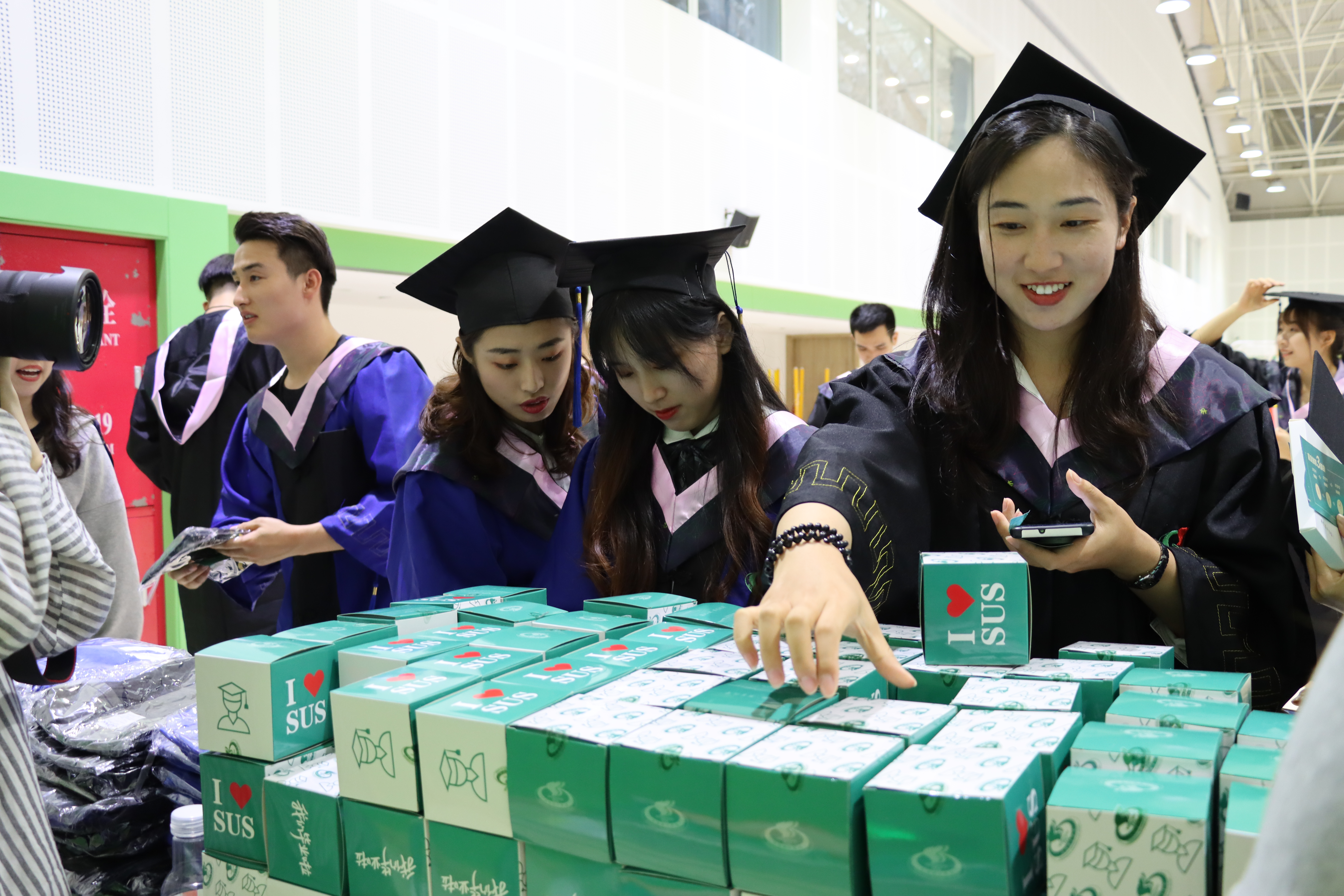 为鼓励毕业生们在校内各个美好的角落留下足迹,学校早在两个月前就开始筹备毕业嘉年华活动,并为毕业生提供了签名墙、祝福墙、彩绘墙等主题拍照道具,特别定制了“上体盲盒”,设计投放了上体猫咪钥匙扣、手绘卡套、绿瓦钥匙扣等多种多样的校园文创礼品,通过拍照互动、集章打卡等形式发放,尽显毕业生的上体情怀。通过这样的打卡游戏与毕业礼物,糅合了家国情怀与绿瓦情怀,用别开生面的活动为学生留下毕业前的最后一份美好回忆。
