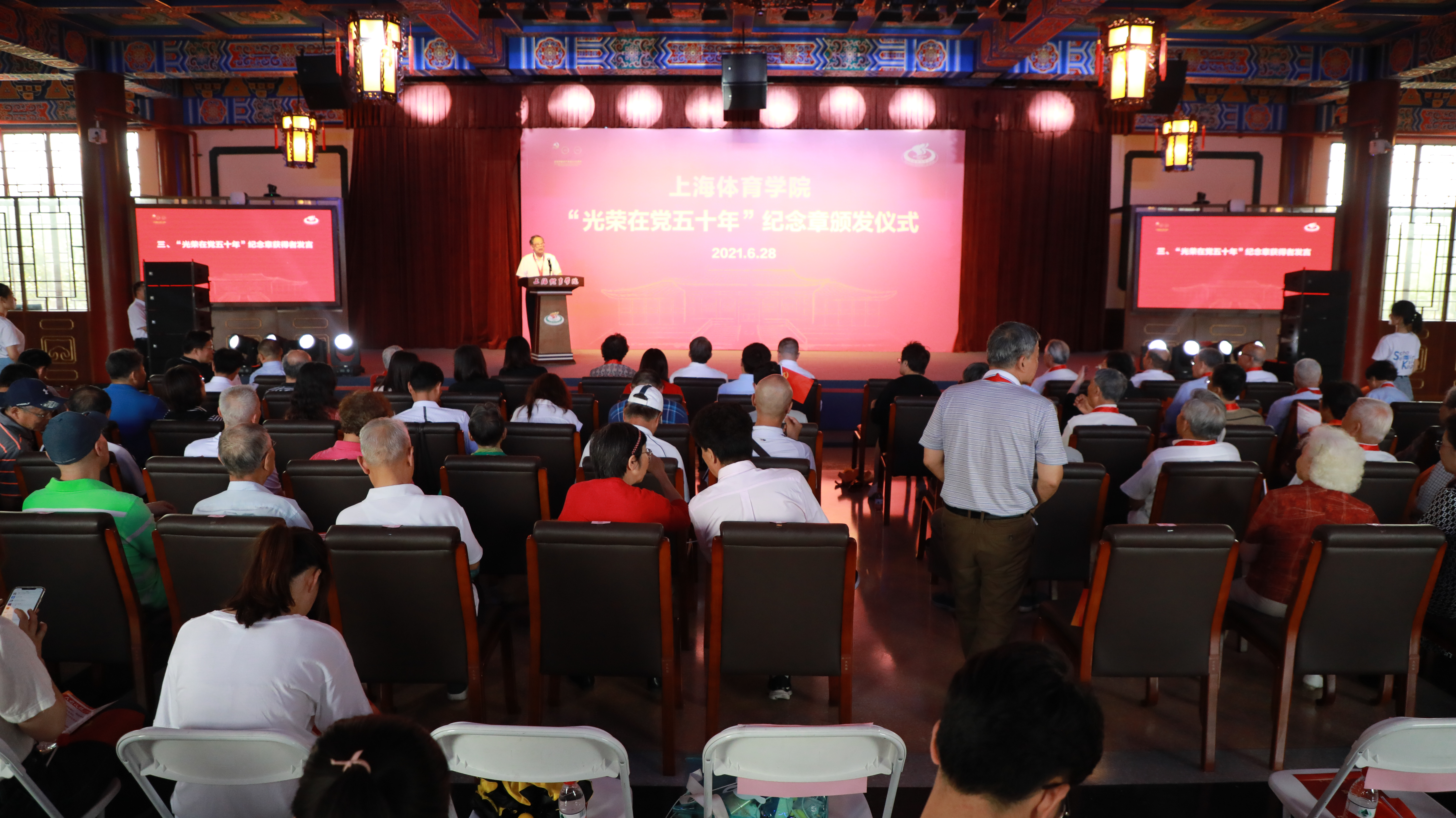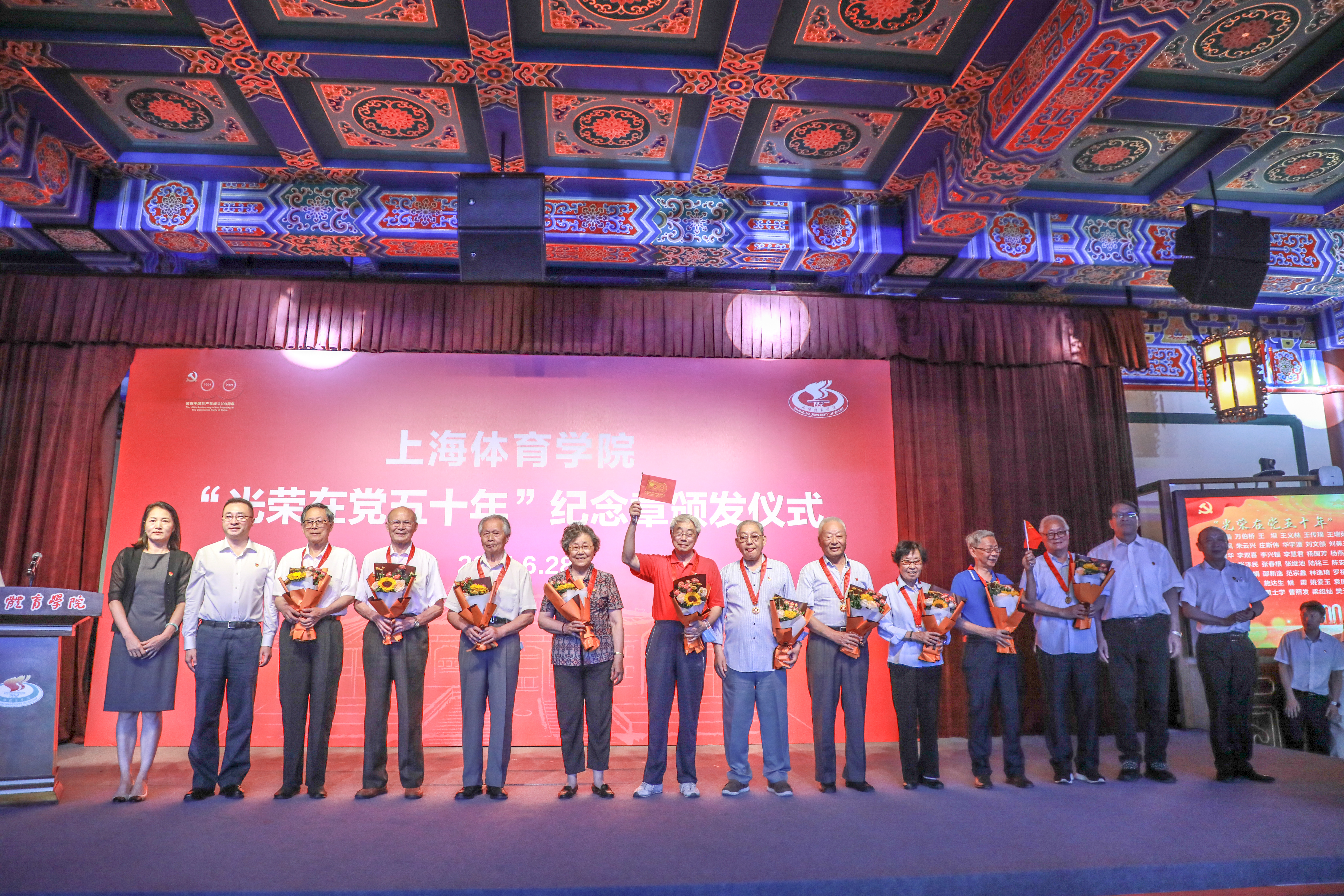 本网讯 近日,经党中央批准,红足一1世共有74位老党员获得“光荣在党五十年”纪念章。6月28日下午,上海体育学院“光荣在党五十年”纪念章颁发仪式在绿瓦大楼大礼堂隆重举行。校党委书记李崟,党委副书记、院长陈佩杰,党委副书记潘勤、杨玲,党委副书记、纪委书记崔勇,党委副书记、副院长王继红,副院长王陈出席,退休老干部、老同志代表,主要职能部门负责人,各二级党组织书记和学生代表等参加。党委副书记潘勤主持颁发仪式。