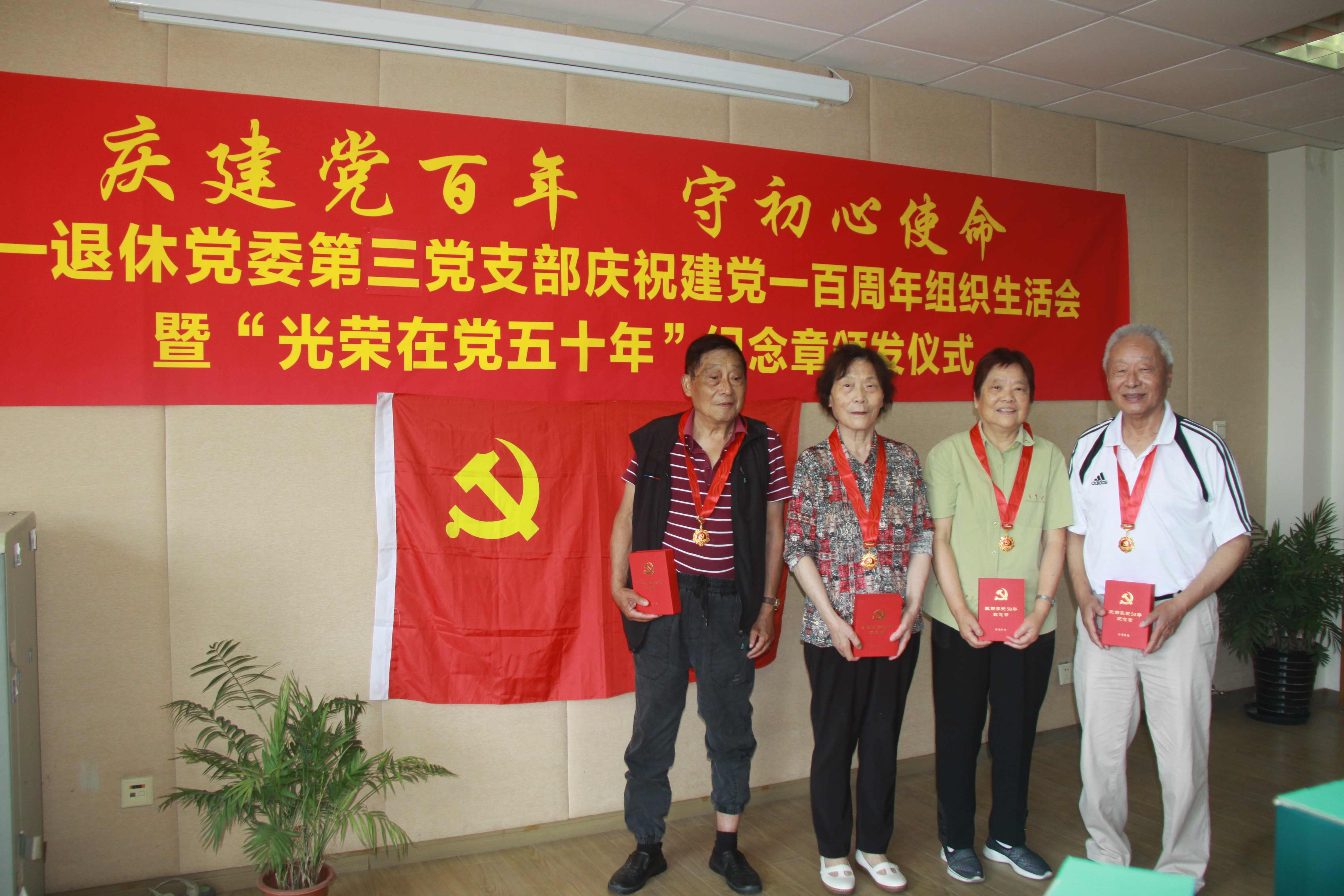 在学校党委颁发仪式之前,退休党委组织各退休党支部相继召开了“庆建党百年 守初心使命”专题组织生活会和“光荣在党50年”纪念章颁发仪式,并通过上门走访慰问,为行动不便的老党员颁发纪念章,将党中央的关怀送到老党员的心坎上。老党员纷纷表示要不忘初心、牢记使命,发扬离岗不离党、退休不褪色的精神风貌,继续一如既往地关心和支持学校事业发展,以优异成绩向党的百年华诞献礼。