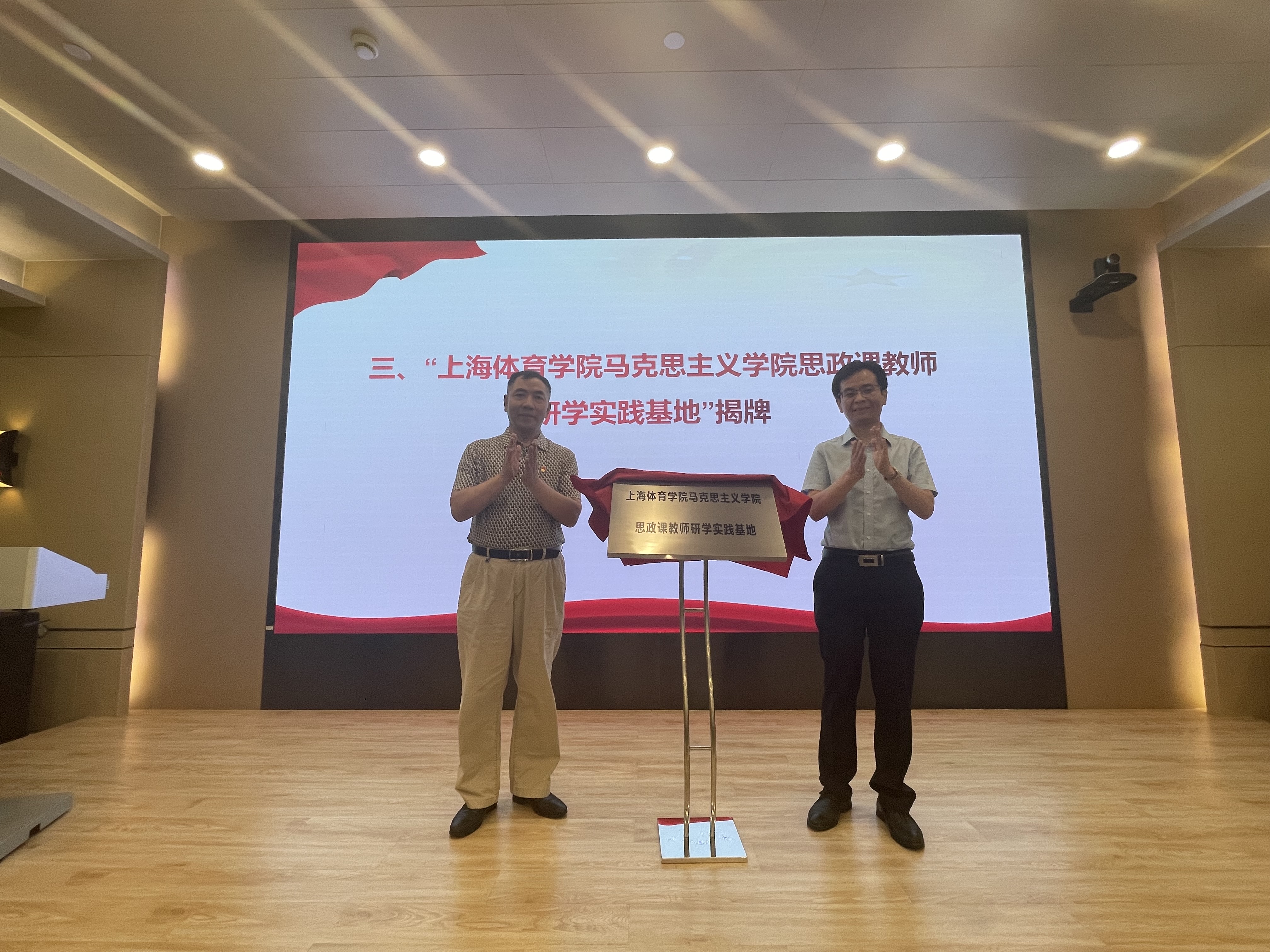 会上,马克思主义学院直属党支部书记、常务副院长胡德平与上海开放大学创新实验室常务副主任、非学历教育部部长王松华共同为“上海体育学院马克思主义学院思政课教师研学实践基地”揭牌。
