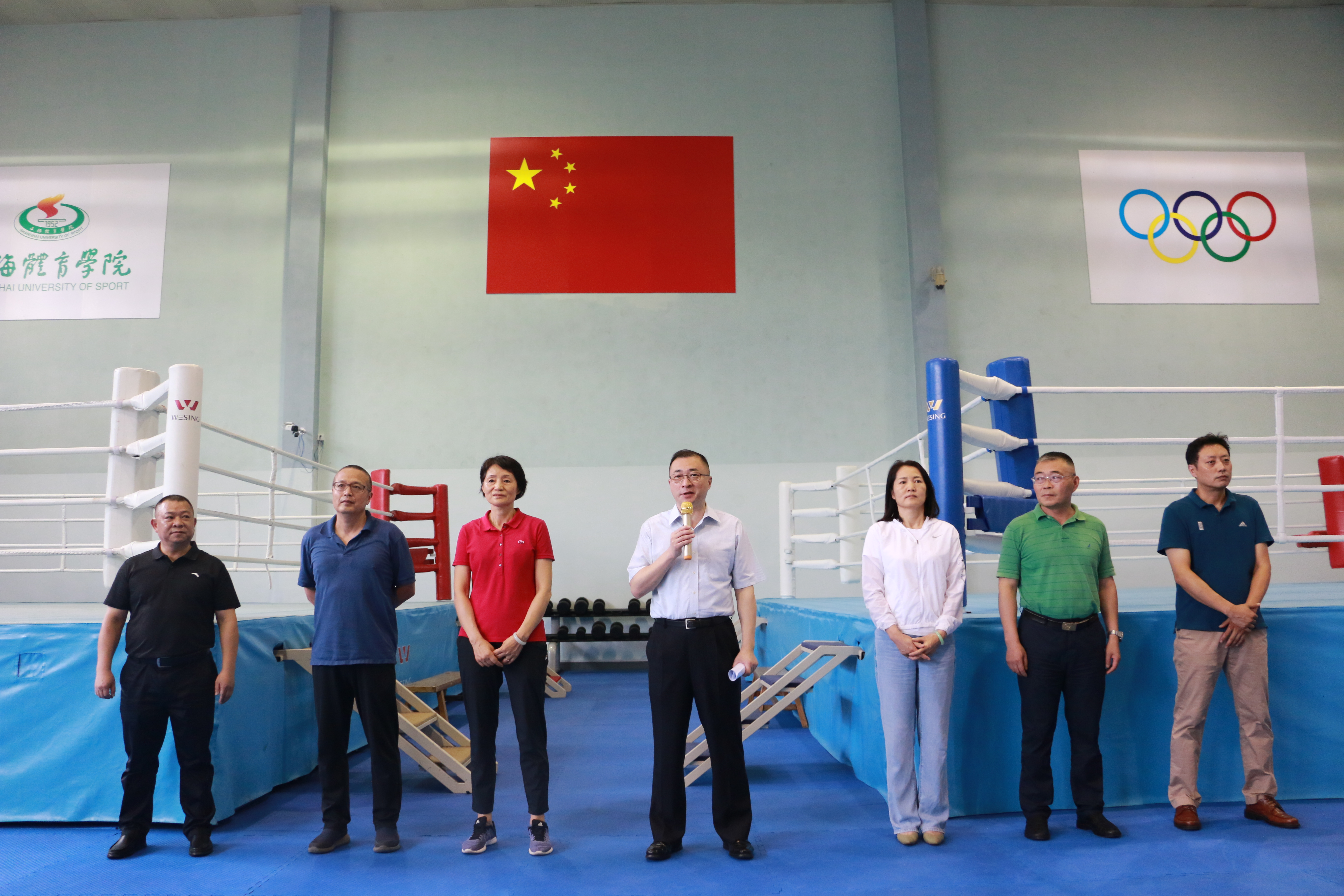 本网讯 7月22日,大暑。上海体育学院附属竞技体育学校2021年夏训动员会在徐汇校区拳击馆召开,院党委书记李崟、党委副书记杨玲、训竞处处长邵春、体育教育训练学院党委书记徐烈和竞校领导班子、教练员、运动员一起进行“全运会倒计时55天,全力以赴决战冲刺”的夏训大动员。