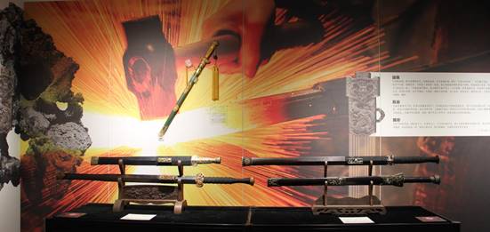剑,为短兵之祖、百兵之君,是威严的权杖、礼仪的信物,更是侠义的象征,早已超越武器的本真含义,转化为蕴含着谦让、宽容、坚强、忠义等优良品质的文化载体。上海体育学院中国武术博物馆作为教育部全国普通高校中华优秀传统文化传承基地(武术)的重要展示平台,一直将收藏珍贵宝剑、传播铸剑工艺、弘扬剑文化作为自身责任与义务,馆藏有战国复合剑、秦代长剑等重要宝剑,且依托上海体育学院中国体育历史研究院、中国体育非物质文化遗产研究院,深耕武术历史与文化,尤其深入钻研剑与武在历史和文化等不同维度的内在关联。此次“天下龙泉”特展,精选龙泉宝剑锻制技艺非遗传承人打造的龙泉宝剑44件,将中国武术宝剑的历史与文化以精品展的方式呈现给大家。