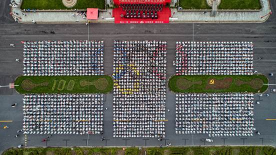 最后,师生同唱《没有共产党就没有新中国》,从歌声中汲取力量,坚定永远跟党走的信心。上海体育学院2021级新生开学典礼在壮丽的歌声中结束。