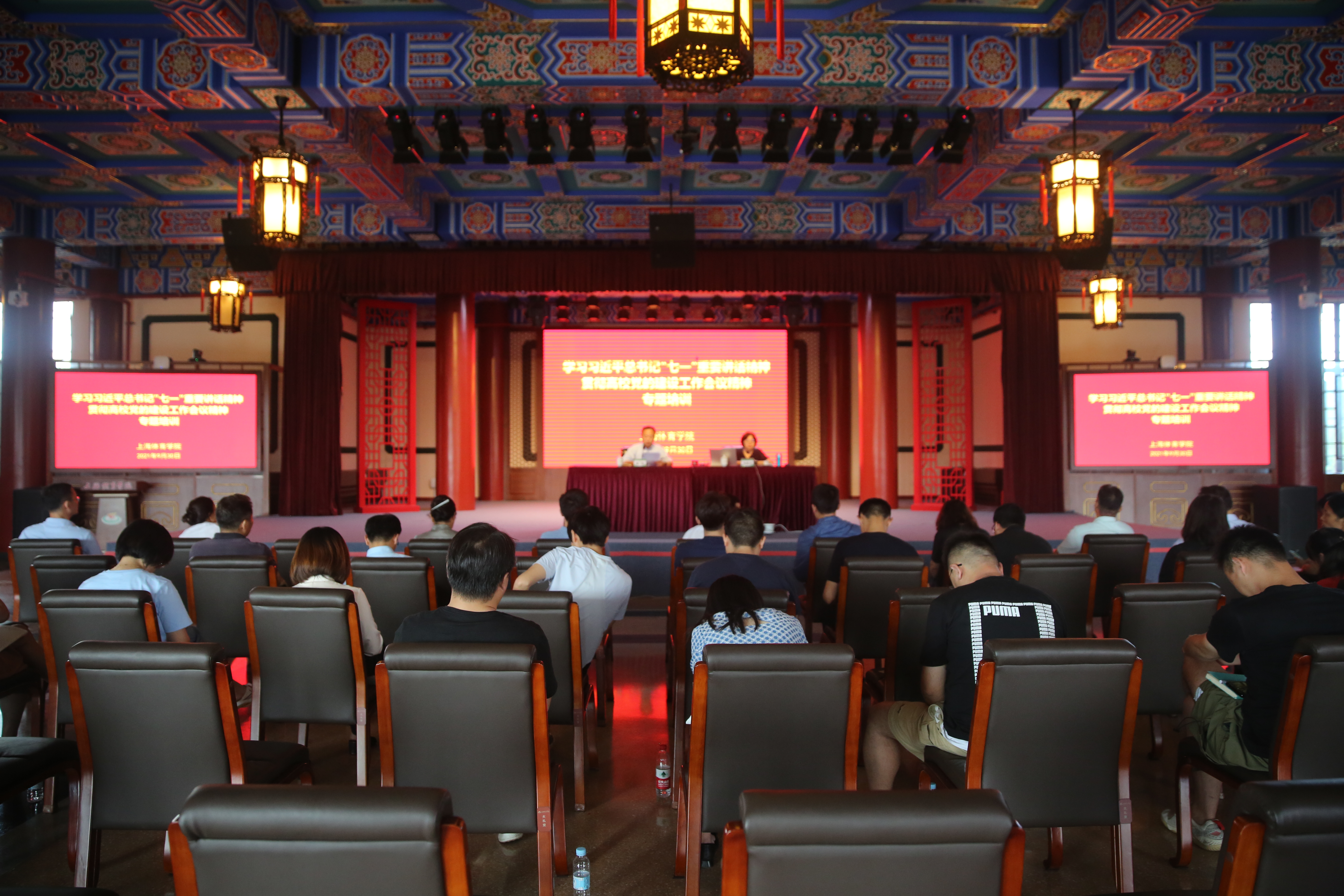 本网讯 为深入学习贯彻习近平总书记在庆祝中国共产党成立100周年大会上的重要讲话精神,落实第二十七次全国高校党的建设工作会议和上海高校党的建设工作会议精神,认真学习宣传和贯彻《中国共产党普通高等学校基层组织工作条例》,提高新时代党的建设质量和水平,学校党委组织开展“学习习近平总书记‘七一’重要讲话精神 贯彻高校党的建设工作会议精神”专题培训。9月30日下午,学校特邀上海市委讲师团党史学习教育专家宣讲团成员、上海市委党校二级教授、科研处处长周敬青教授作题为《全面贯彻新时代党的组织路线——< 中国共产党组织工作条例>解读》的专题报告。