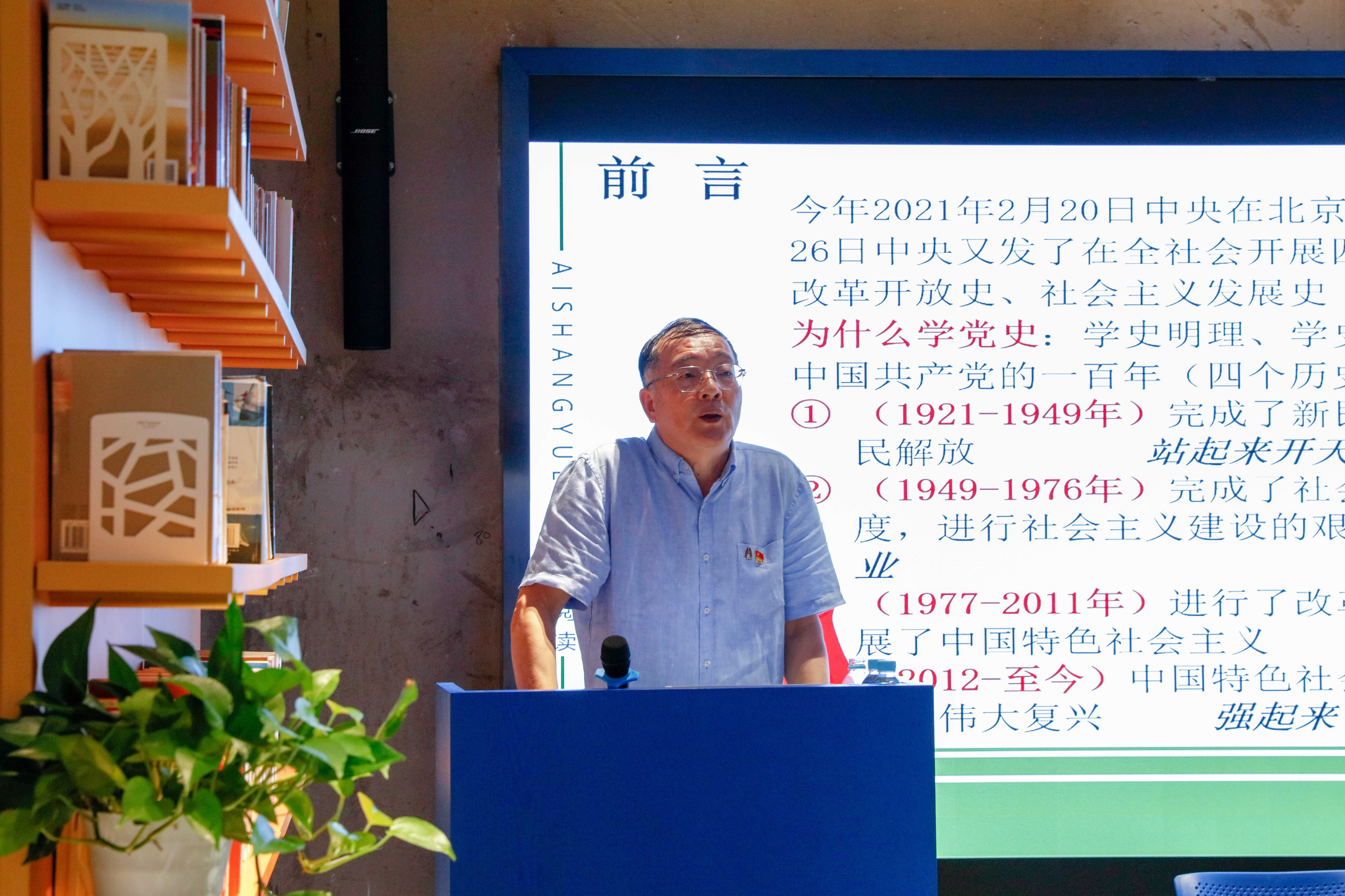 第一、二、七党支部在绿瓦体育书店——党史学习教育基地,进行了党史学习教育的组织生活会,会上组织部邀请了专家赵勇先生进行了“学党史 悟思想 见发展--回眸百年江湾历史变迁”的专题讲座,在一个多小时的专题讲座中,赵勇先生谈到,中国共产党的百年历史,见证了三个深刻改变:1921-1949年-开天辟地救国大业;1949-1976年-改天换地兴国大业;1977-2011年-翻天覆地富国大业;2012-至今-惊天动地强国大业。杨浦区的红色资源是开展党史教育的宝贵资源,赵勇先生的《浦江一湾》描绘了上海新江湾城的前世今生。