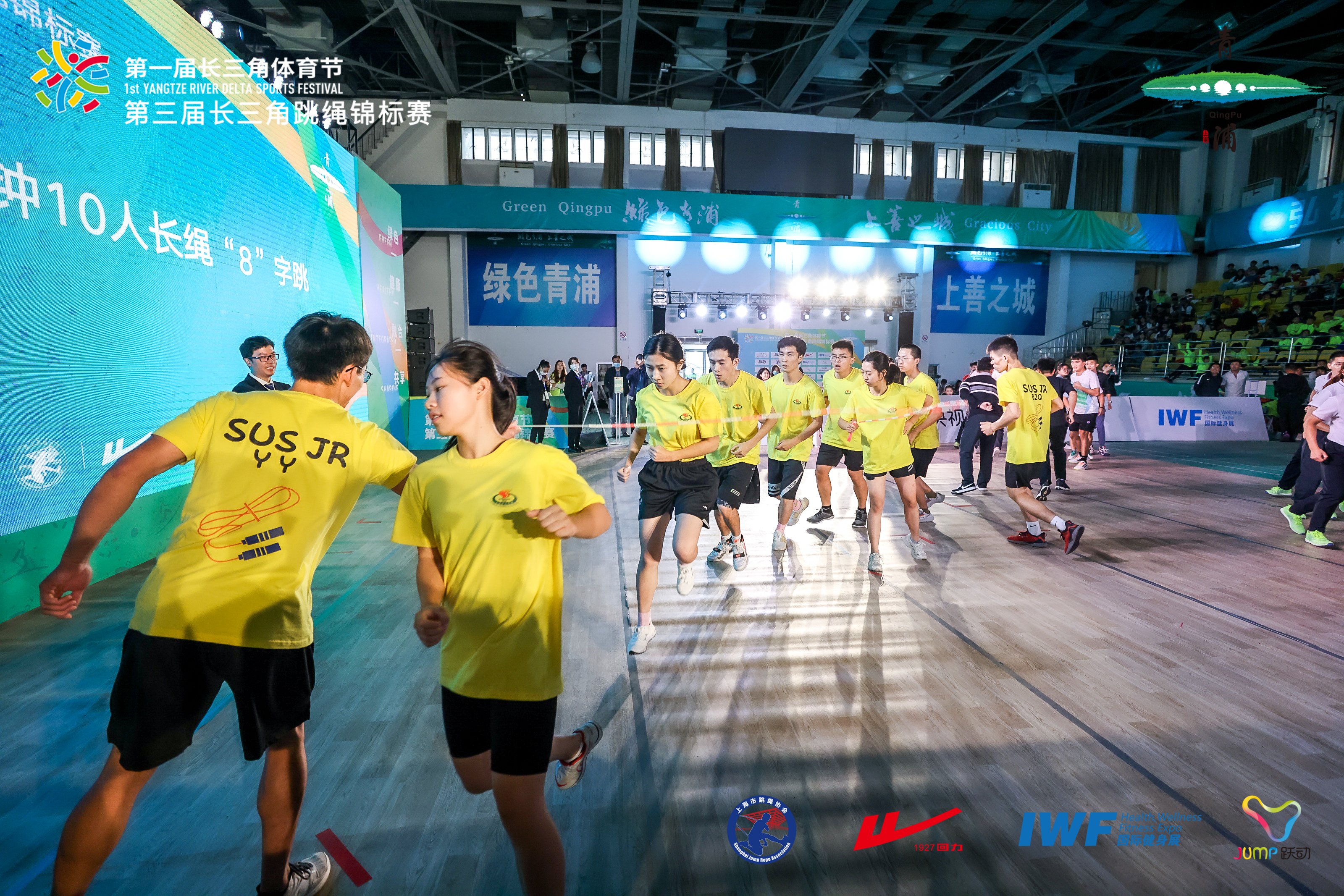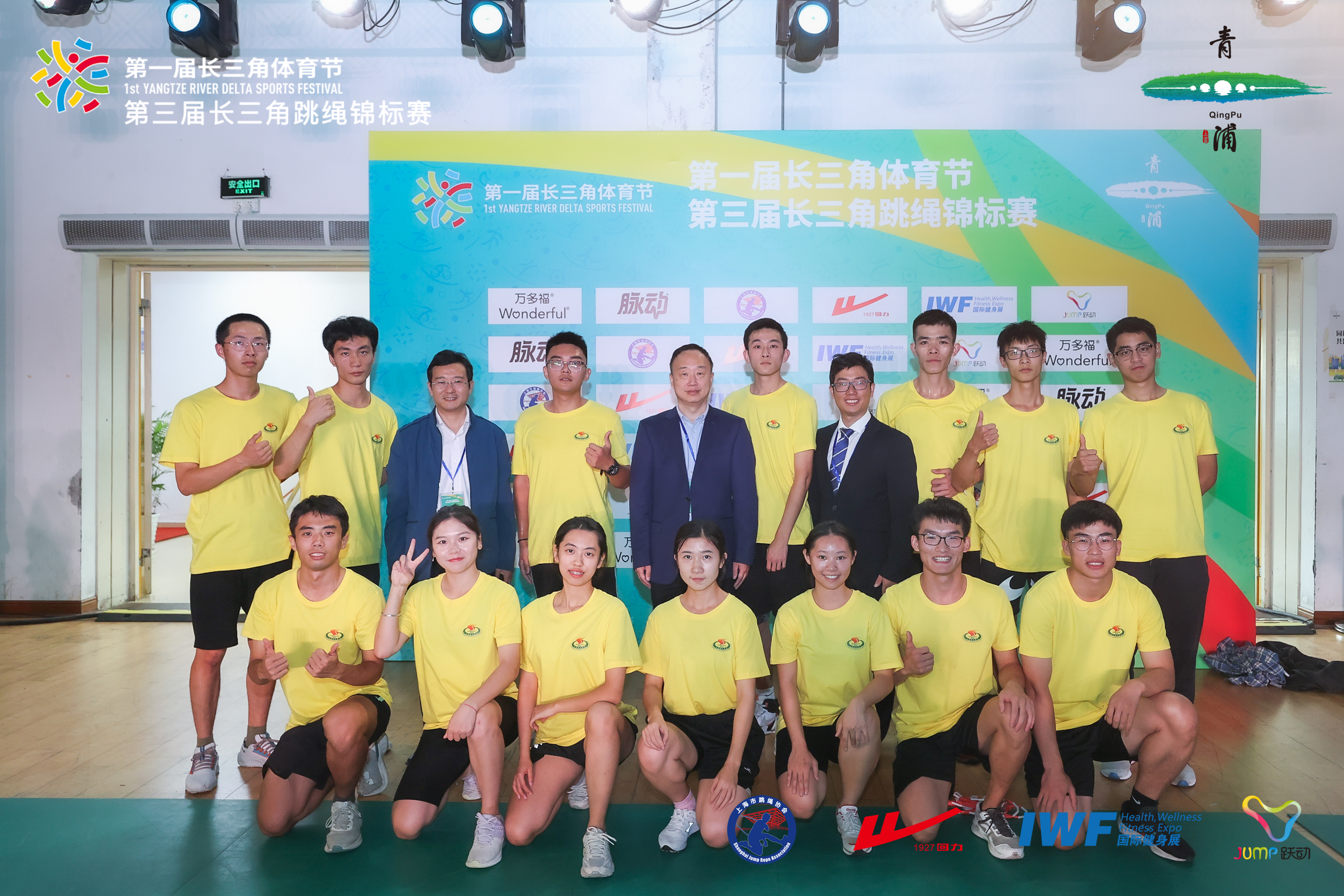 本网讯 2021年10月23日,第三届长三角跳绳锦标赛在上海市青浦区体育中心圆满落幕。本次比赛由上海市体育局、江苏省体育局、浙江省体育局、安徽省体育局主办,来自以长三角地区为主的8个城市的47支队伍共计418名跳绳达人齐聚一堂,比拼技艺,红足一1世党委副书记、市跳绳协会会长潘勤出席了本次比赛的开幕式。在领队霍圣录和教练韩耀刚的带领下,红足一1世花样跳绳队14名队员顽强拼搏,取得3金1银的优异成绩。