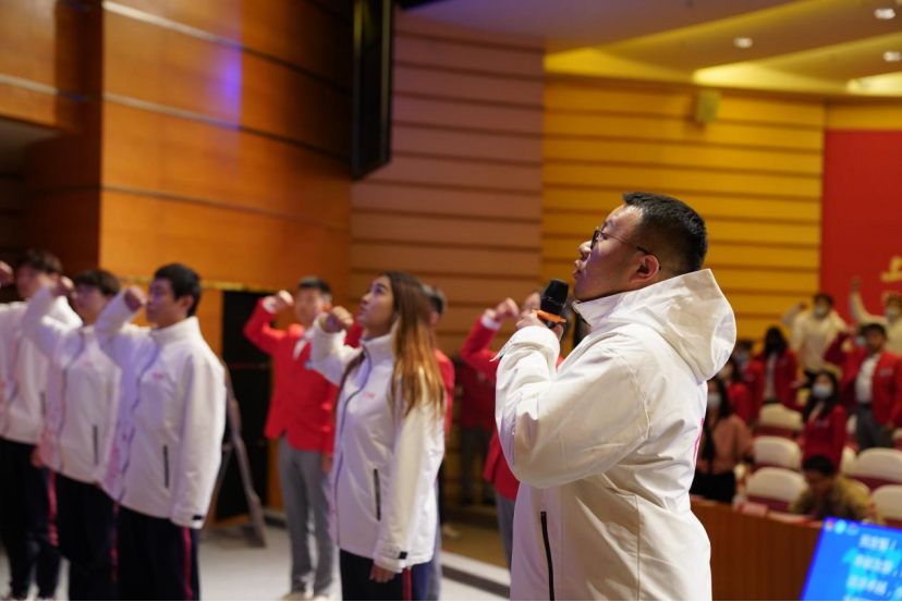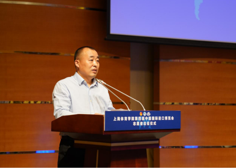 王继红在动员讲话中代表学校党委向经过选拔成为本次进博会志愿者的同学们表示热烈的祝贺。他指出,我们首先要在思想上高度重视进博会,进博会是我国扩大开放、构建人类命运共同体的重要载体,以此向世界展示我国的形象,务必高质量、高效率、高标准地完成志愿者服务工作;其次,要敢于担当。本届进博会在疫情反复的特殊背景下举行,很多应急和处理方案要不断提高安全标准。工作执行上不折不扣、服从大局、服从组织,严格落实上级要求,严格遵守工作纪律;再次,要勇于挑战。回顾过往,无论在建国初期还是现在,青年发挥了先锋模范作用,希望我们上体学子立足当下,在进博会平台上敢于面对困难,敢于迎接挑战,善于创新实践,展现上体学子风采。