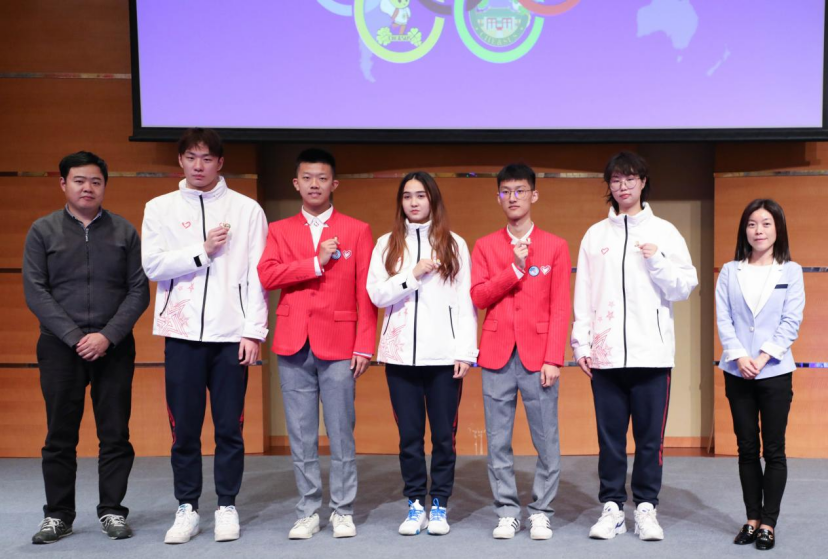 党委宣传部副部长(主持工作)夏铭娜、党委组织部副部长蒋啸天为志愿者佩戴上新款徽章。上体进博徽章从9月份开始全校征集设计稿,到投票、校对、定稿、制作,有学生团队自主完成,全套包含一个主徽章、一个志愿者徽章、三个运动徽章,五个徽章主题颜色与奥运五环相呼应,同时包含绿瓦大楼、进博四叶草、上体小火炬、体育运动等设计元素,体现了上体进博会志愿者的绿瓦精神、体育精神、志愿精神。