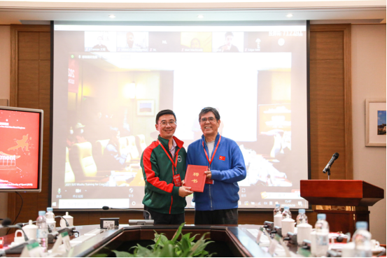开营典礼在与会嘉宾与线上学员们的“云合影”中迎来了尾声。2021年“一带一路”国家和地区高水平武术教练员培训项目将于2021年10月28日至11月16期间举行,并得到上海市武术院(上海市健身气功管理中心)的支持。该项目旨在深化我国与“一带一路”沿线(地区)在武术领域的交流合作并搭建共享平台。通过增进交流、提升水平,更好地推动中国与世界各国在武术领域的交流合作,传播中国传统武术文化,建设体育强国。让武术将世界各地的学员们融于一堂,携手共进,传承千年之文化,共赏武术之风华!