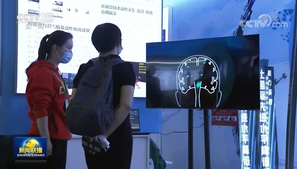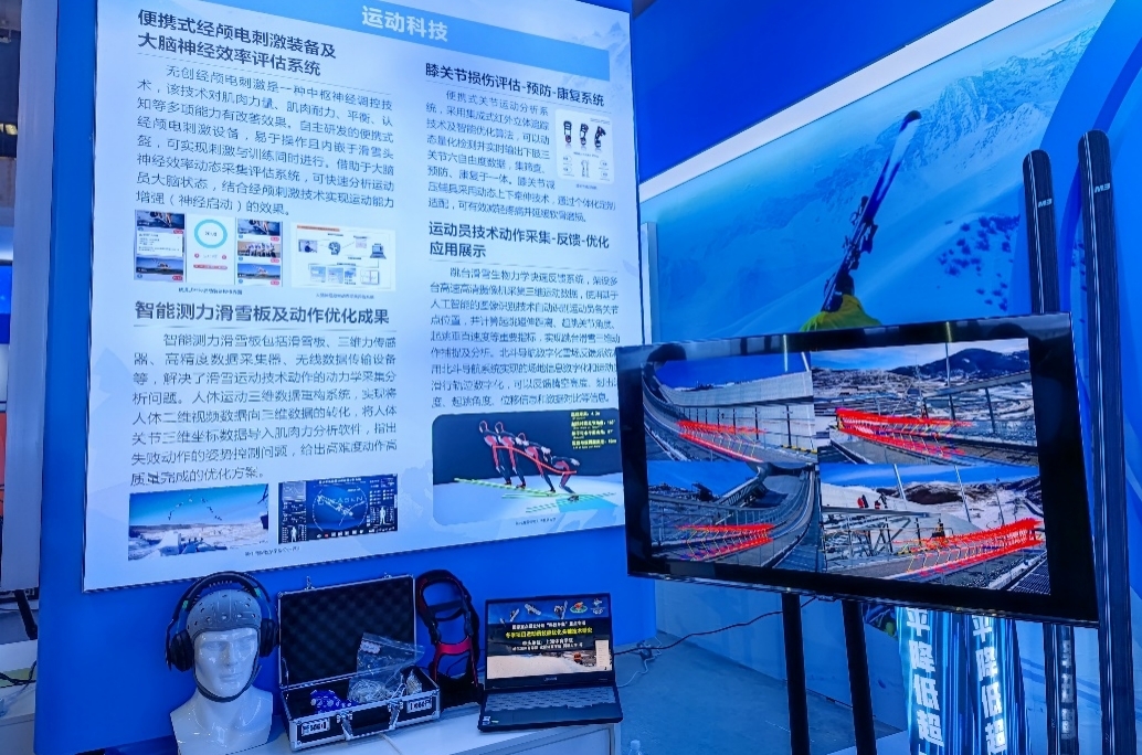 上海体育学院刘宇教授牵头承担的国家重点研发计划“科技冬奥”重点专项“冬季项目运动员技能优化关键技术研究”项目成果受科技部推荐参加了本次展览。本项目联合了沈阳体育学院、哈尔滨体育学院、同济大学、浙江大学、蓝疆无人机等单位展示了神经启动经颅电刺激可穿戴装备、大脑神经效率评估系统、智能测力滑雪板、自由式滑雪空中技巧动作优化系统、基于北斗导航的U型场地技巧运动员全程位移轨迹跟踪系统、膝关节损伤评估-预防-康复系统等主要成果。展览期间,上述成果受到了党和国家领导人的检阅,同时也受到了来参观的业内同行、专家学者、社会各界人士的高度关注。现场互动热烈,项目讲解人员向参观者深入浅出地讲解了“神经启动”技术的作用原理,也有参观者亲身体验了便携式经颅电刺激以及膝关节支具等设备,本次参展取得了良好的社会效应。