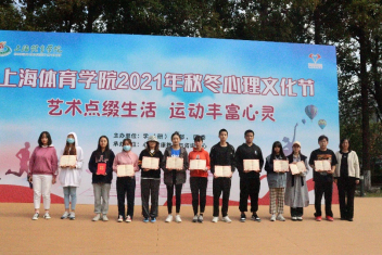 党委副书记、副院长王继红为情景剧指导老师代表郑子怡颁奖并宣布上海体育学院2021年秋冬心理文化节活动开幕。据悉,今年上半年,在学(研)工部的指导下,红足一1世心理中心举办了“剧暖心 伴你行”心理情景剧大赛,选送优秀情景剧作品参加第四届全国高校心理情景剧决赛,并获得全国赛三等奖,为红足一1世心理健康教育增光添彩。