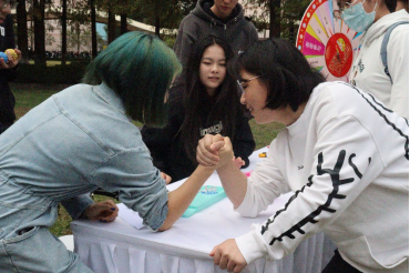 开幕式后,各学院学生参与“运动与艺术”主题的一系列心理文化嘉年华活动。现场共设置8个活动摊位,学生通过参与“艺”心灵、有趣的心理学你见过吗、“叶落成画”园艺疗法体验、爆破你的压力气球、“幸运动动动”、默契大挑战、文武双全、“我想说”等不同专区活动释放压力情绪、促进身心健康。