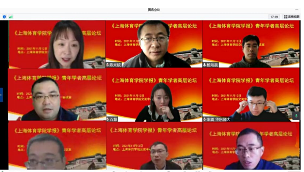 本网讯 2021年11月12日,《上海体育学院学报》(以下简称《学报》)青年学者高层论坛在上海体育学院体育交流中心第一会议室召开。来自国家体育总局、复旦大学、华东师范大学、中国科学院大学、华中师范大学、华东政法大学、华南师范大学、福建师范大学、苏州大学、上海师范大学、上海政法学院、武汉体育学院等单位及本校的20余位青年学者通过线上与线下相结合的形式参加了论坛。