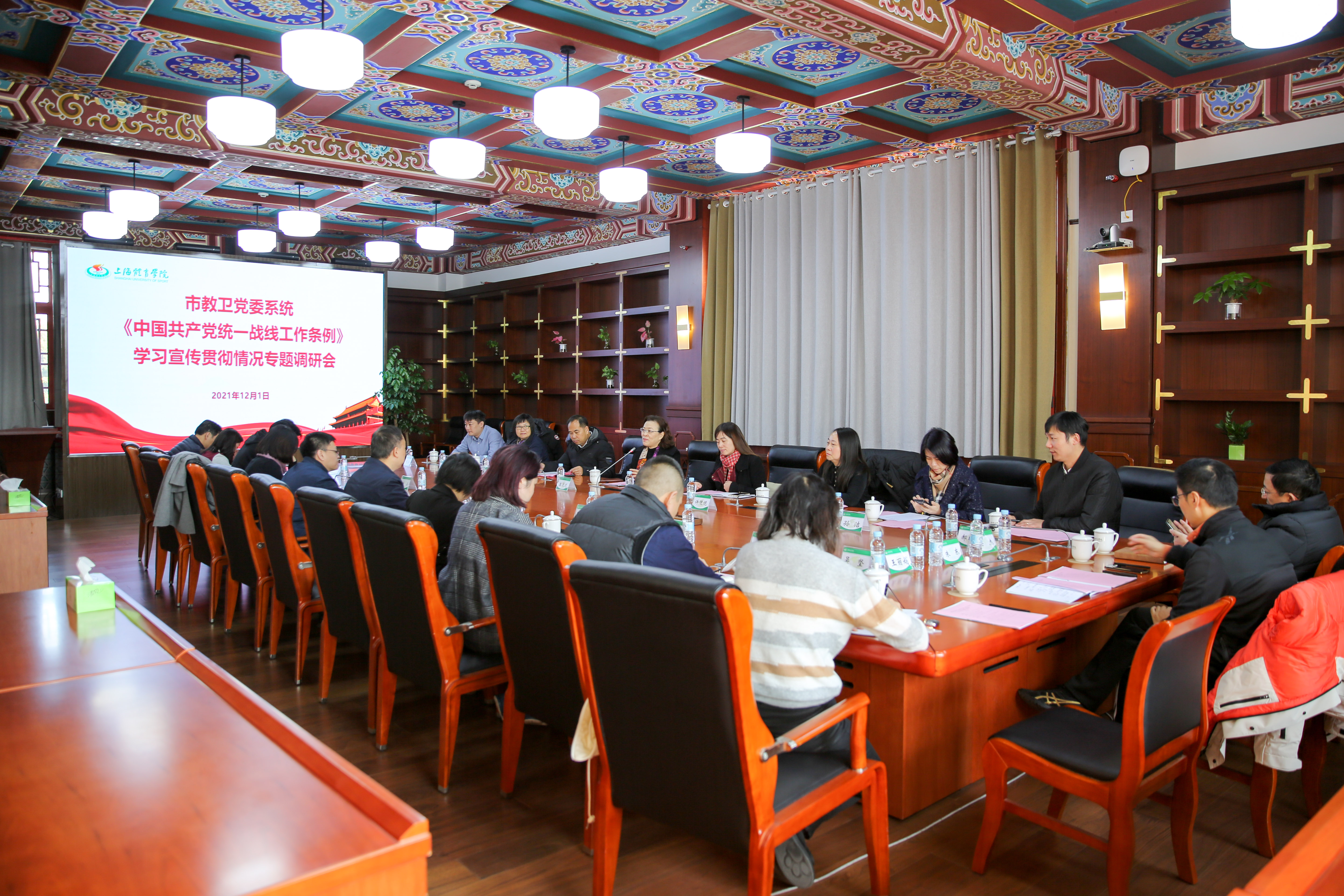 本网讯 12月1日上午,市教卫党委系统学习宣传贯彻《中国共产党统一战线工作条例》(以下简称《条例》)第二调研组在组长、东华大学党委副书记崔运花的率领下,来红足一1世进行专题调研。校党委副书记、校长陈佩杰接待了调研组一行。校党委副书记潘勤,统战部、宣传部、教工部、学工部、人事处、国交处、保卫处等职能部门负责人及体训学院党委书记,民盟、民进、农工、九三等党派基层组织负责人,知联会会长等参加调研及座谈。