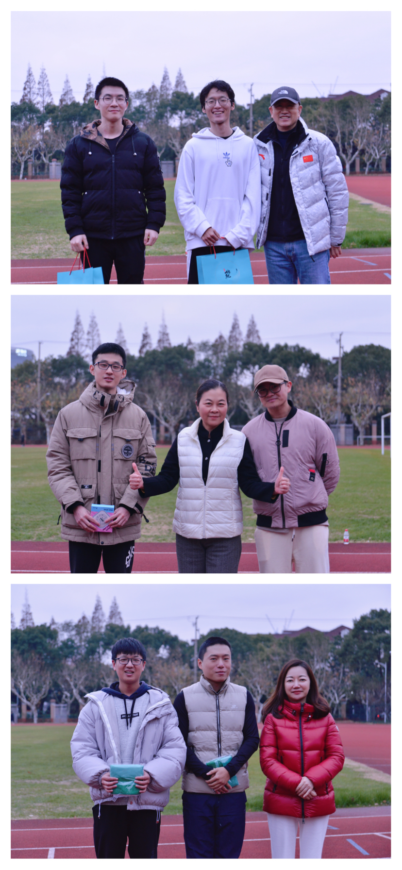 速度测试赛开始后,红色跑道上,是硕博研究生学长学姐奋力奔跑的身影;终点线前,身着统一裁判服的本科学生会学弟学妹们,一丝不苟严谨地打秒统计成绩;老师们或在场边为自己的弟子们加油,或干脆加入奔跑的队伍一起向前……田径场上,蓝天绿草间,师生们共同见证了坚持运动所带来的身心愉悦与快乐体验。最后,院领导为测试赛一二三等奖代表颁奖,鼓励他们保持良好的学习运动习惯,争取齐进步双丰收。