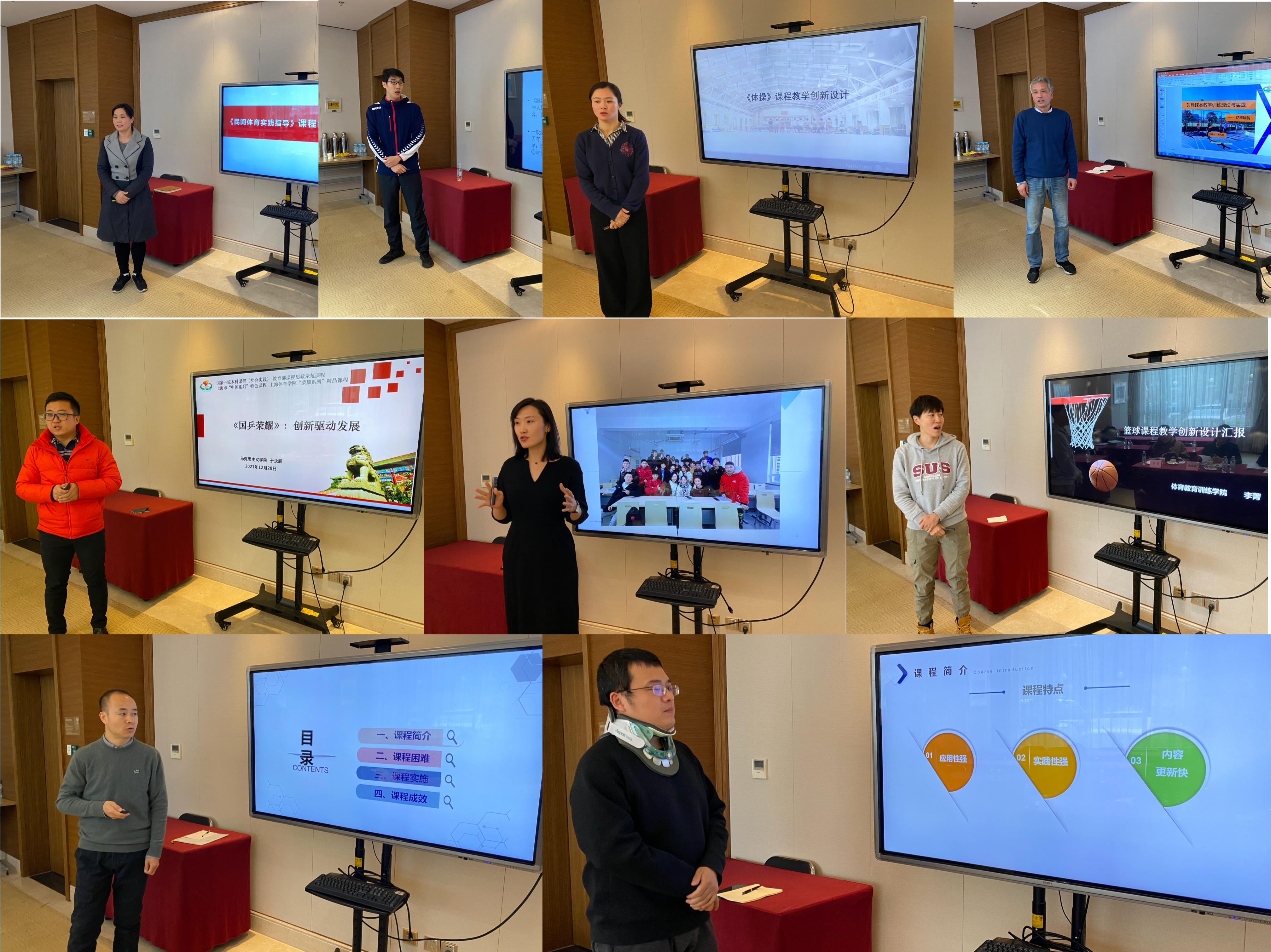 汇报展示阶段,9位参赛教师围绕课程的教学理念与教学目标、教学内容、教学过程与方法、教学考评与反馈四个维度进行15分钟的教学创新设计报告。3位校内外评委认真听取汇报,严格把关,在每位教师展示结束后做了精彩点评。专家指出,教学创新设计应“以学为中心”突出问题导向,提出解决方案、具体举措。此外,应在课程教学目标中体现高阶性,教学方法、教学活动中展示创新性,评价考核中落实挑战度的“金课”设计标准。同时,对课程建设需深度凝练特色,通过创新教学内容、教学方法、考核方式,融合信息技术最终达到学生综合素养、高阶能力提升的人才培养目标,并在教学中形成具有广泛推广意义的成果,对外辐射,服务社会。