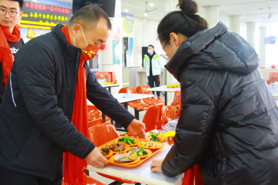 本网讯 1月31日,学校在第一餐厅举办2022年春节留校学生年夜饭活动。校党委书记李崟、党委副书记、副院长王继红及相关职能部门负责人、二级学院党政领导、导师及辅导员代表,与留校学生共享家宴、恭贺新春。