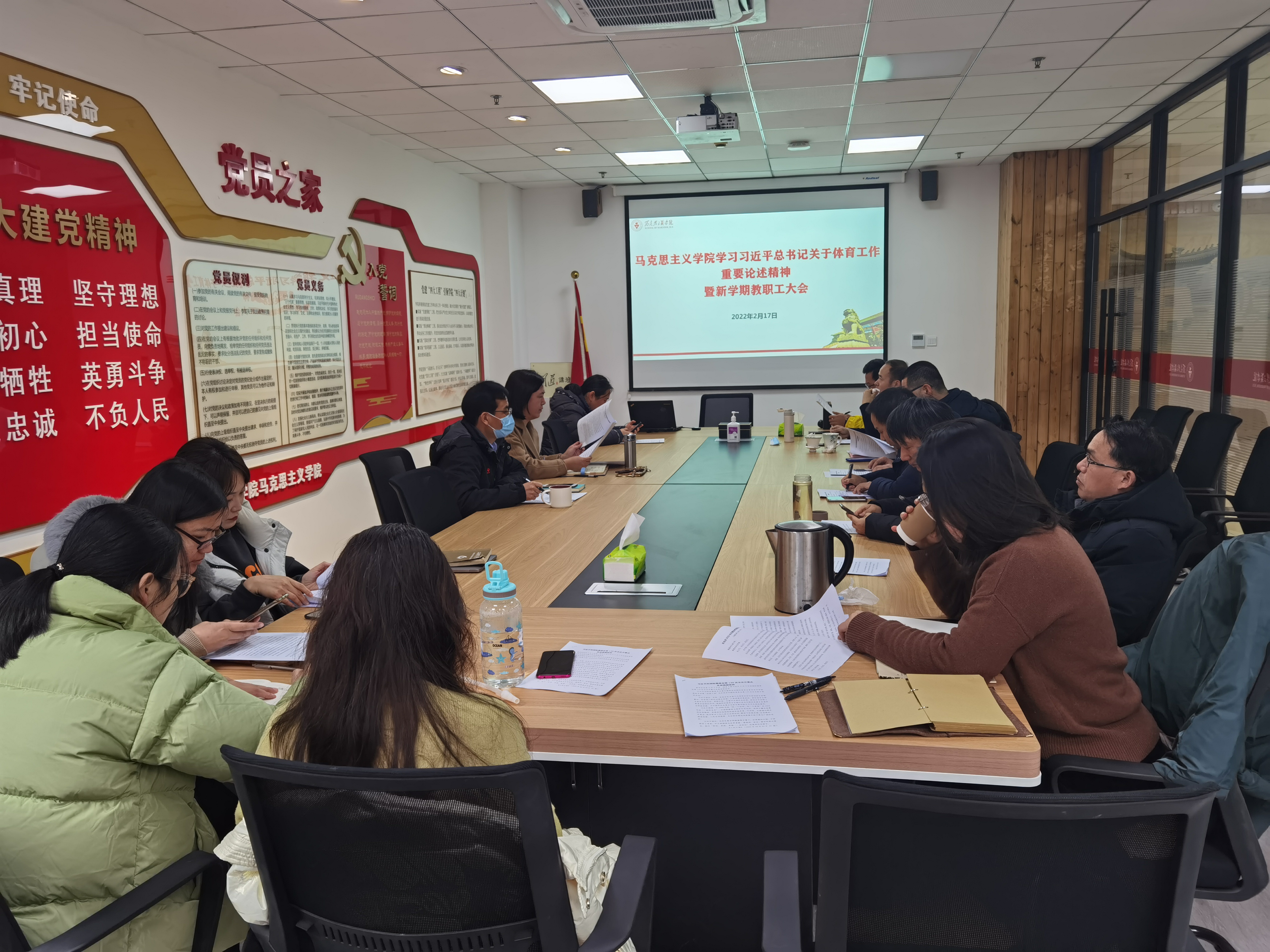 本网讯 2月17日上午,在北京冬奥会正在举办和新学期开学之际,马克思主义学院直属党支部组织专题学习会,深入学习习近平总书记关于体育工作重要论述精神,并结合学习,研究部署新学期学院工作。