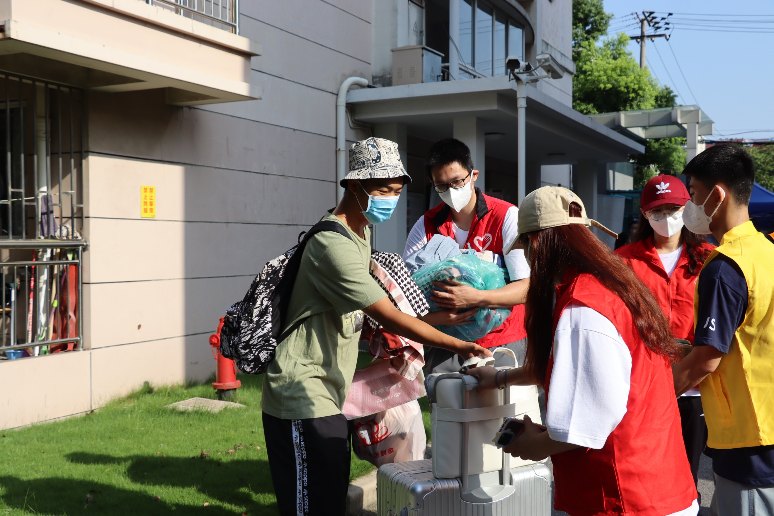 “同学你好!请登记”“同学这边走”迎新工作的背后还有默默无闻的医护人员、保安、宿管阿姨等;信息办、财务处等职能部门为了保障迎新工作顺利进行,也在两个宿舍区设置了线下咨询服务台。各站点、宿舍楼宇间、车棚核酸点、食堂前时刻穿梭着热情周到、友善得体的各条线教职工和志愿者同学们,他们铸成了送给上体新生的“第一张名片”,共同营造温煦有爱的“第一次相见”。