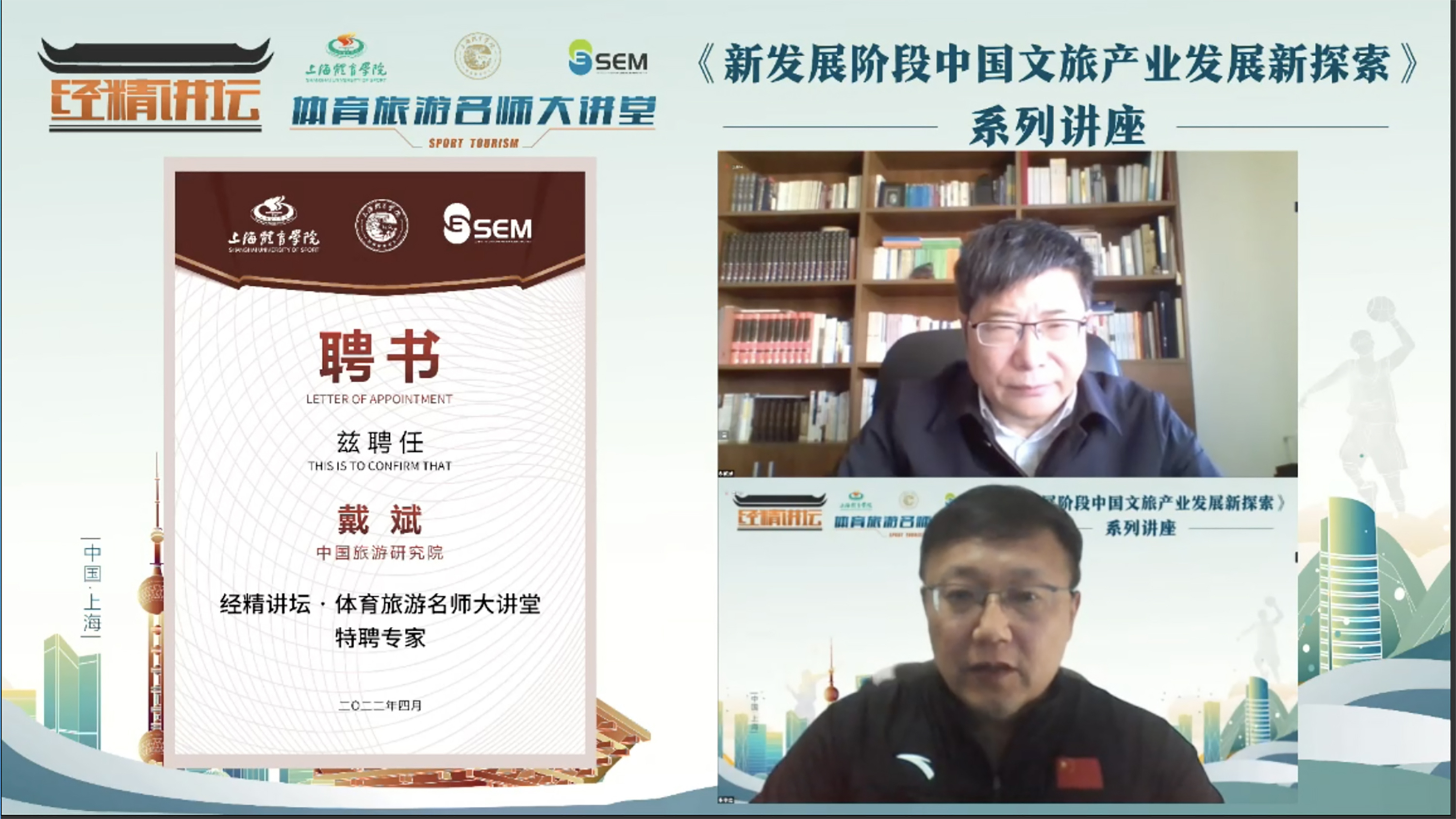本网讯 4月16日下午,经济管理学院“经精讲坛•体育旅游名师大讲堂”新发展阶段中国文旅产业发展新探索系列讲座第一期顺利举行。中国旅游研究院院长、文化和旅游部数据中心主任戴斌教授应邀开讲,本次直播共吸引了1000多人次观看。