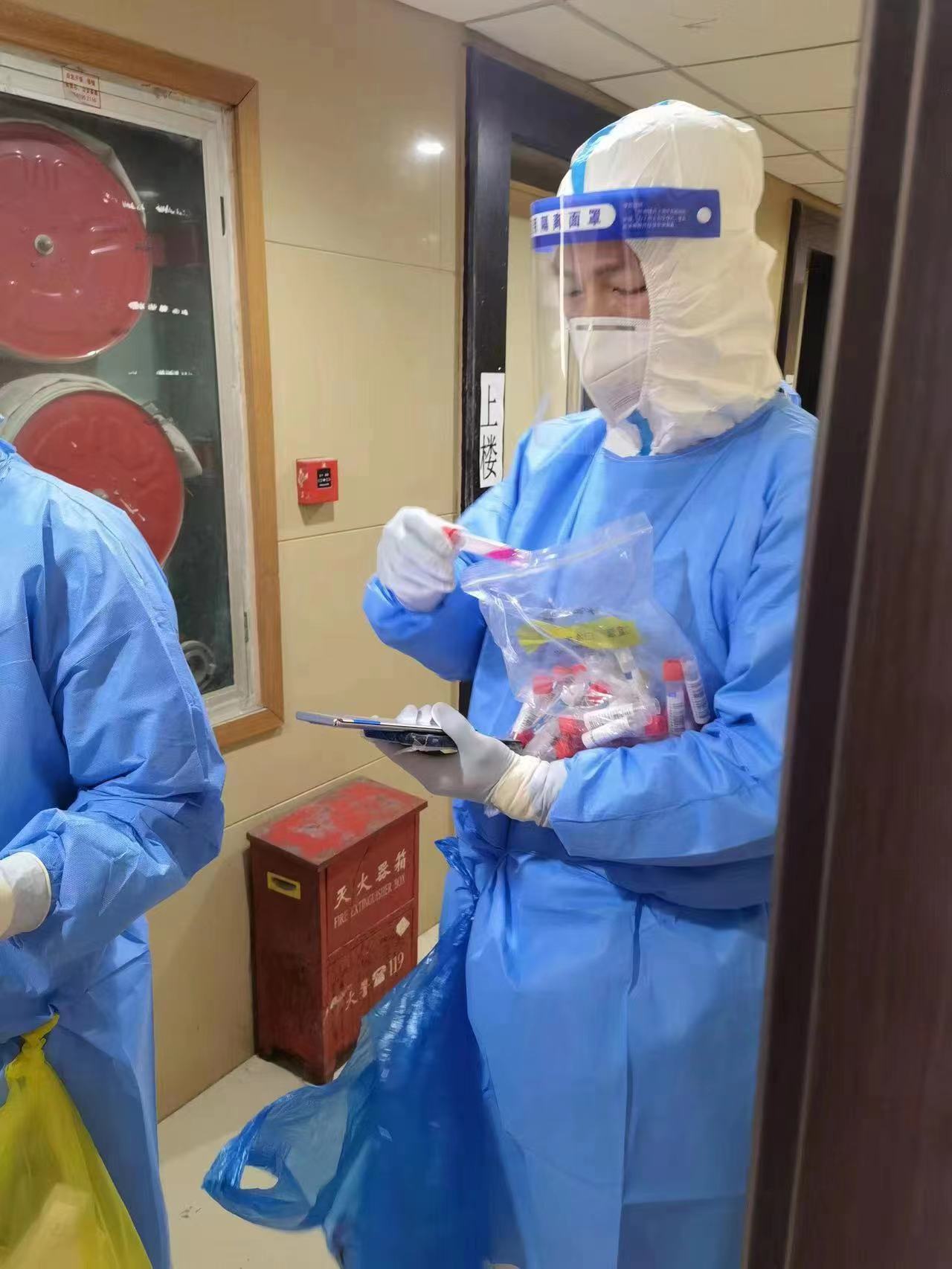 副主委崔永超老师是学校信息办主任,他在疫情中不仅服务在校学生,还服务社区工作。在学校事务中,崔老师主要负责学生的流调工作。通过排查疑似人员的WIFI路径,找出其所携带智能终端在校内经过的位置,提供一线人员缩减视频排查的范围。并且,崔老师在所居住的小区内担任志愿者工作,协助楼组长派发物资。在楼栋内一对一与户独居老人结对子,协助团购生活物资、看病配药等特殊情况的处理。4月15日,崔老师接学校组织部命令报入市组支援防疫一线的人员储备库,参与住所区街道的一线核酸采样任务,参与街道医院前往点位封控楼栋的核酸采样工作,挨门挨户进行敲门配对试管和核酸扫码。