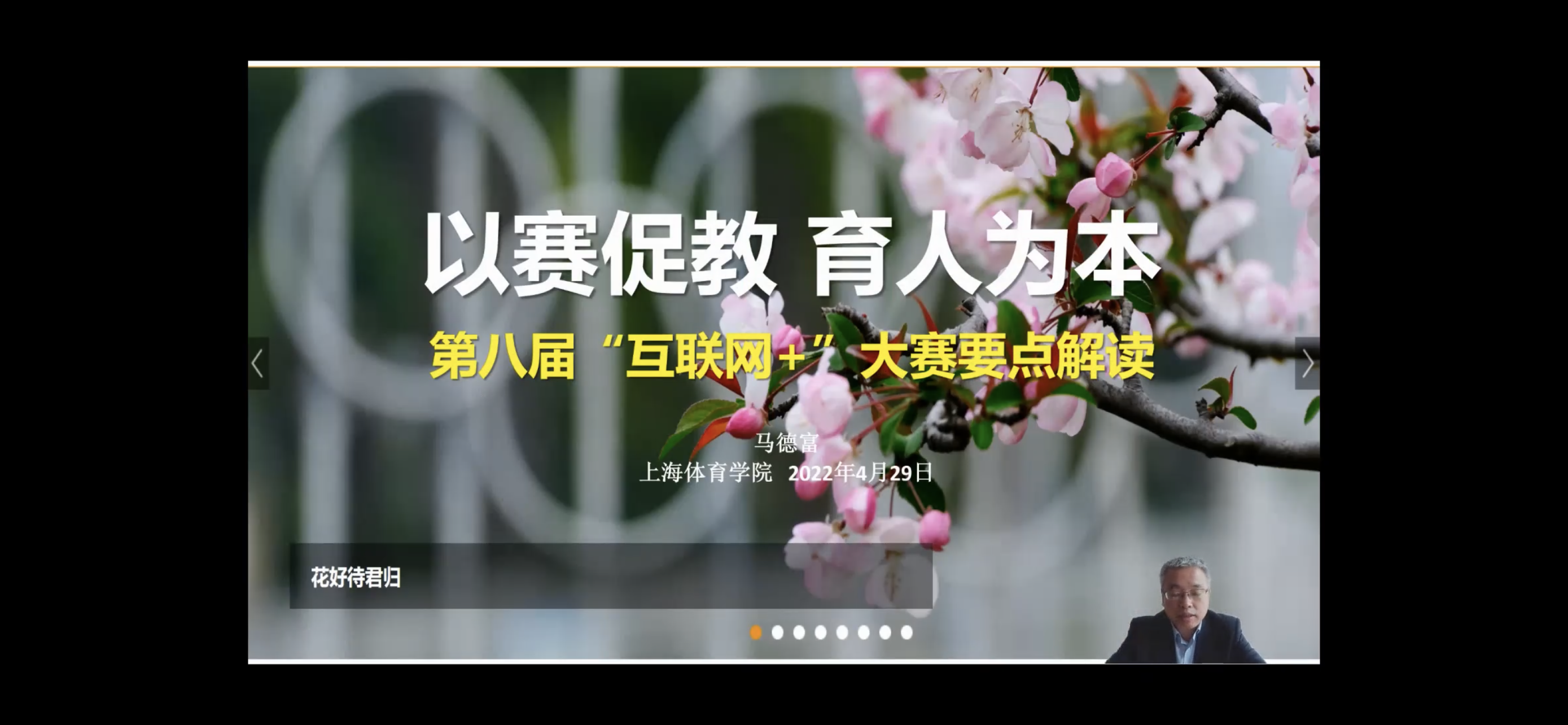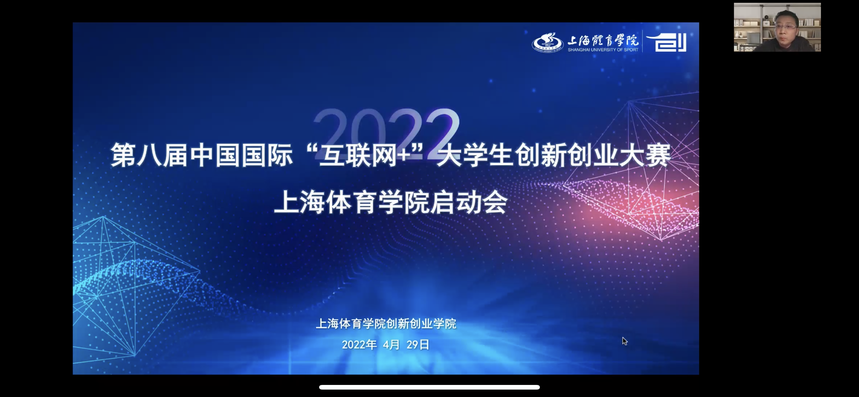 本网讯 上海体育学院第八届中国国际“互联网+”大学生创新创业大赛线上启动会于2022年4月29日(周五)14:00通过腾讯会议平台顺利举行。
