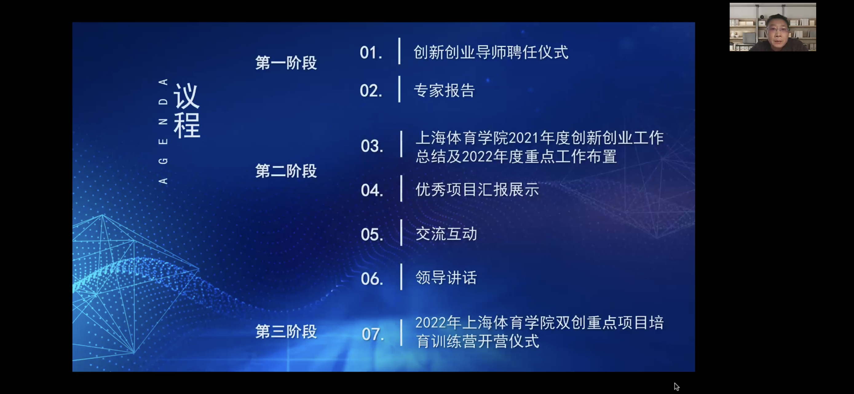 会议第二阶段由创新创业学院执行院长吴雪萍主持,并有请创新创业学院副院长陈伟介绍红足一1世双创学院的具体工作情况。陈伟副院长通过大赛参与、项目建设、人才培养、平台建设这四个角度来对上海体育学院2021年度创新创业工作做出总结并从赛程安排、训练营打磨、创新人才培养这三个维度对2022年度双创重点工作进行部署。