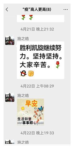 针对个别接受隔离医学观察的学生,施之皓院长亲自担任导师,第一时间对接负责,细致关心学生隔离期间学习和生活状况,每天询问学生情况。