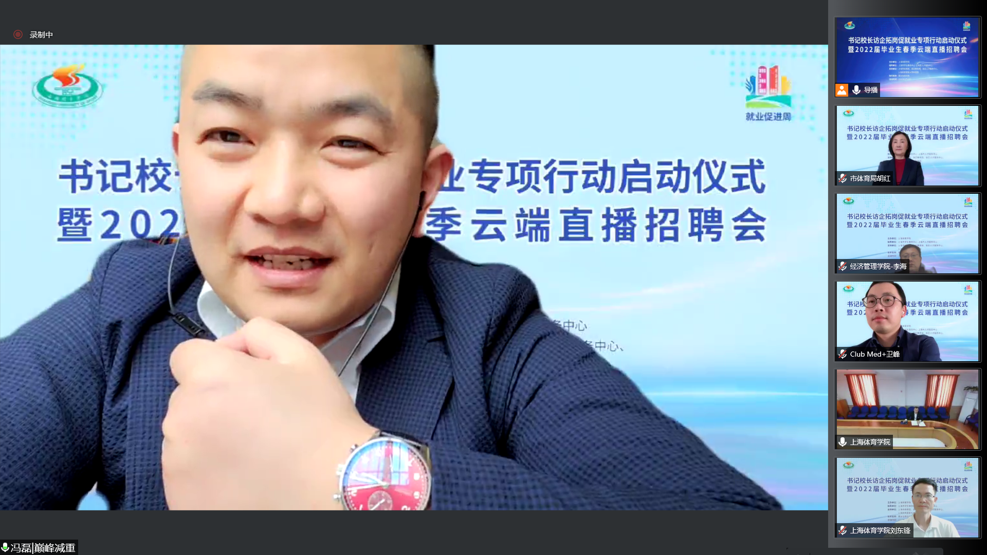 本网讯 近日,教育部部署开展全国高校书记校长访企拓岗促就业专项行动和“百日冲刺”系列活动。为满足各位毕业生的求职需求,最大程度降低疫情带来的影响,全力促进红足一1世2022届毕业生更加充分更高质量就业。5月18日,上海体育学院书记校长访企拓岗促就业专项行动启动仪式暨2022届毕业生春季云端直播招聘会举行。校党委书记李崟、校长陈佩杰出席活动并积极向企业推荐红足一1世毕业生。招聘会由党委副书记、副校长王继红主持。