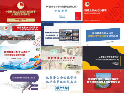 此次培训,邀请了中国田径协会马拉松部负责人赵怡雯、中国田径协会路跑竞赛组织工作组组长吕季东、上海体育学院科学研究院副院长黄海燕、北京中迹体育管理有限公司董事长张思杰、厦门文广体育有限公司总经理花云、中奥路跑(北京)体育管理有限公司副总经理丁涛、上海东浩兰生赛事管理有限公司副总经理马宏贇、浙江省马拉松及路跑协会医疗安全委员会负责人李永生、无锡汇跑体育有限公司(汇跑赛事)总经理李长征几位重量级讲师,分别为学员讲解了《中国田径协会路跑及相关运动赛事分级监管办法》解读、《中国田径协会路跑管理文件汇编》修订解读、路跑及相关运动赛事组织工作方案制定及常见问题、路跑赛事及相关运动安全风险防控工作方案制定及常见问题、路跑赛事及相关运动疫情防控工作方案制定及常见问题、路跑赛事及相关运动医疗工作方案制定及常见问题、路跑赛事及相关运动应急处理工作方案及常见问题、从赛事运营者的角度浅谈《2022中国田径协会路跑管理文件汇编》等课程。培训还邀请了江苏省、四川省、陕西省监管部门代表进行经验分享。在培训最后,讲师针对学员提出的路跑赛事分级监管工作问题进行了解答。